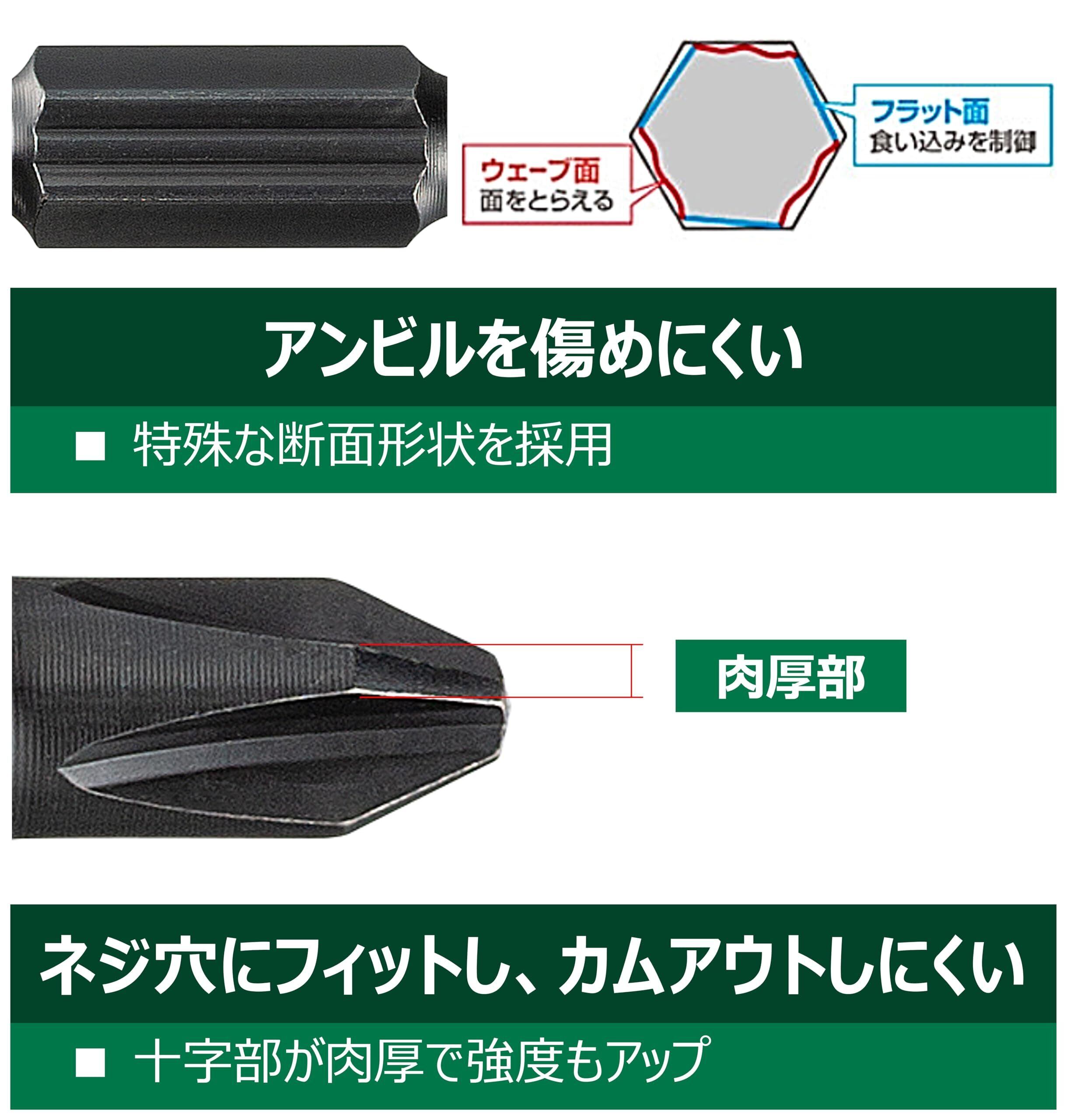 【ねじ穴にフィットしカムアウトしにくい】十字部の肉厚増で強度もアップ!