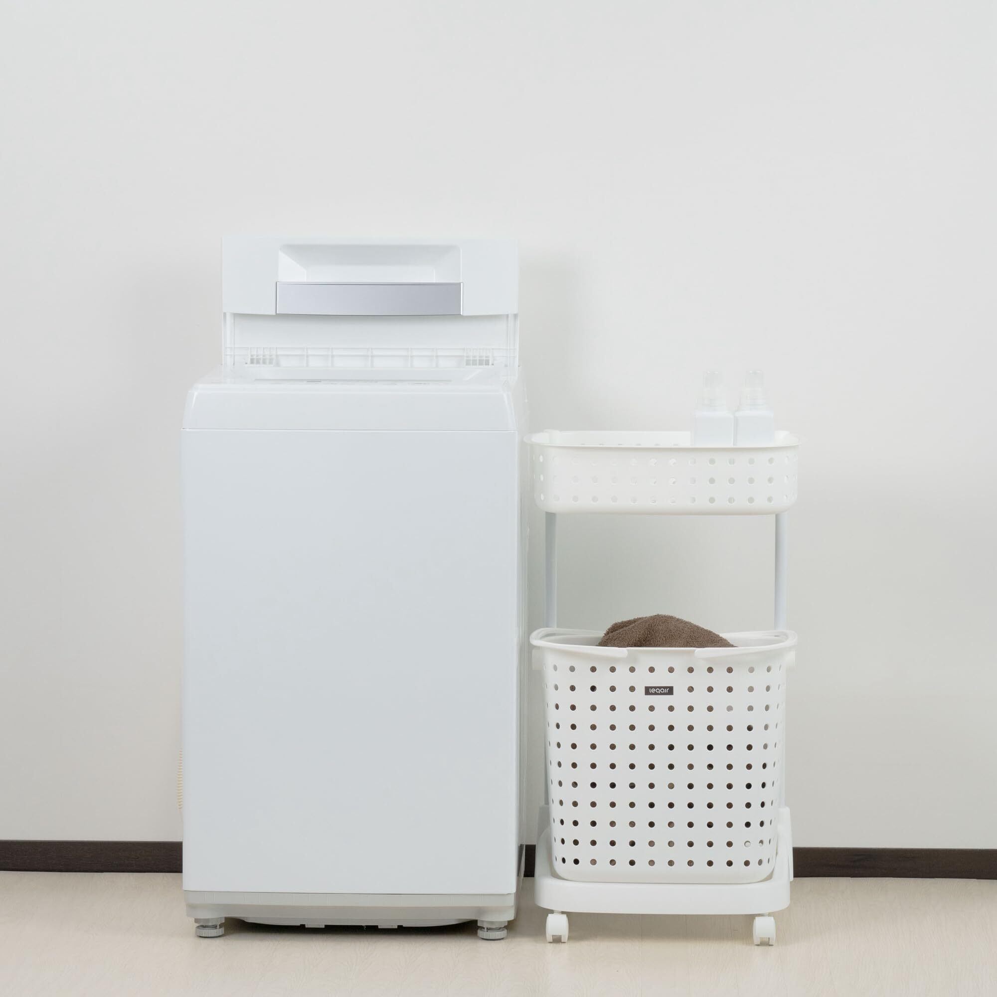 上段にはタオルや着替え、下段は脱衣カゴとして使用するなど、上下で使い分けできます。洗濯物の分別に使えば仕分けの手間が省けて時短に。下段のバスケットは大容量の深型タイプ。洗濯物干し場までの移動に便利なハンドル付き。安心の日本製。