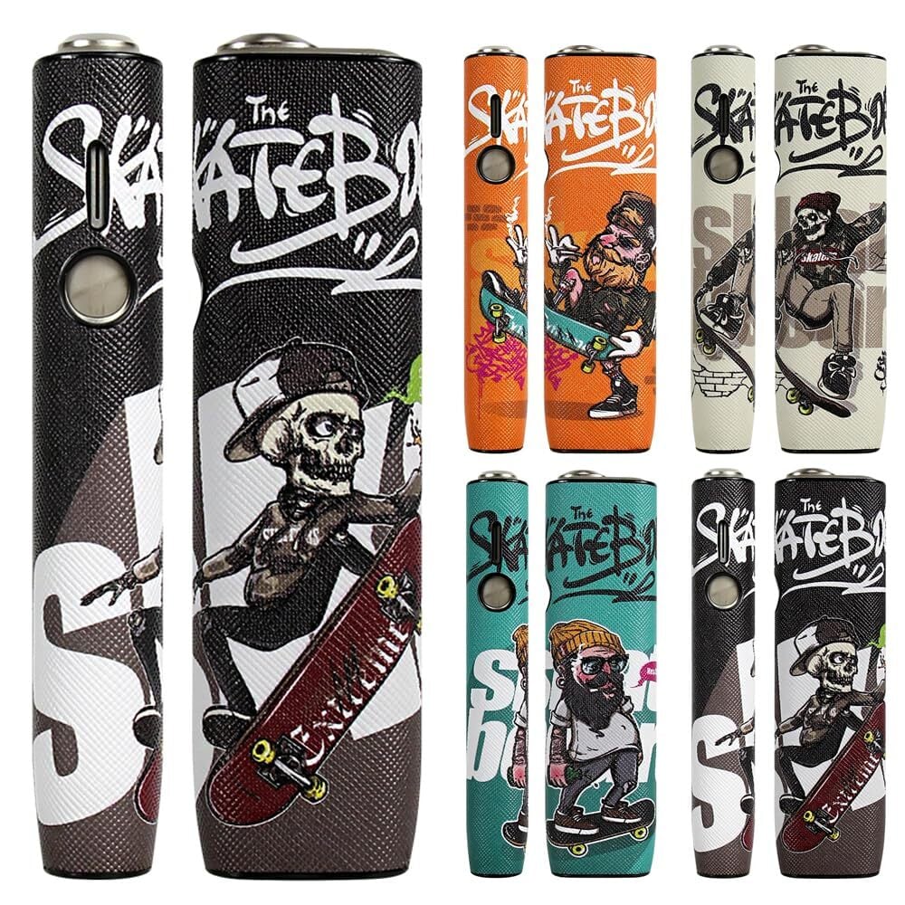 加熱式たばこ用ケース ILUMA ONE/イルマ i ワンに適合する(PUレザー製 360°全面保護 耐衝撃 落書き おしゃれ スケートボード模様 ブラック)