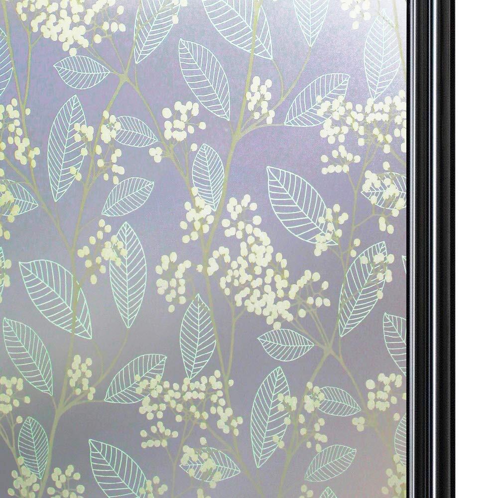 Qualsen 窓ガラス目隠しフィルム 窓 めかくしシート 目隠しシート窓ガラスフィルム ステンドグラス シール 水で貼ってはがせる 外から見えない UVカット 飛散防止 (44.3 x 200 cm, 白果樹) | yankees
