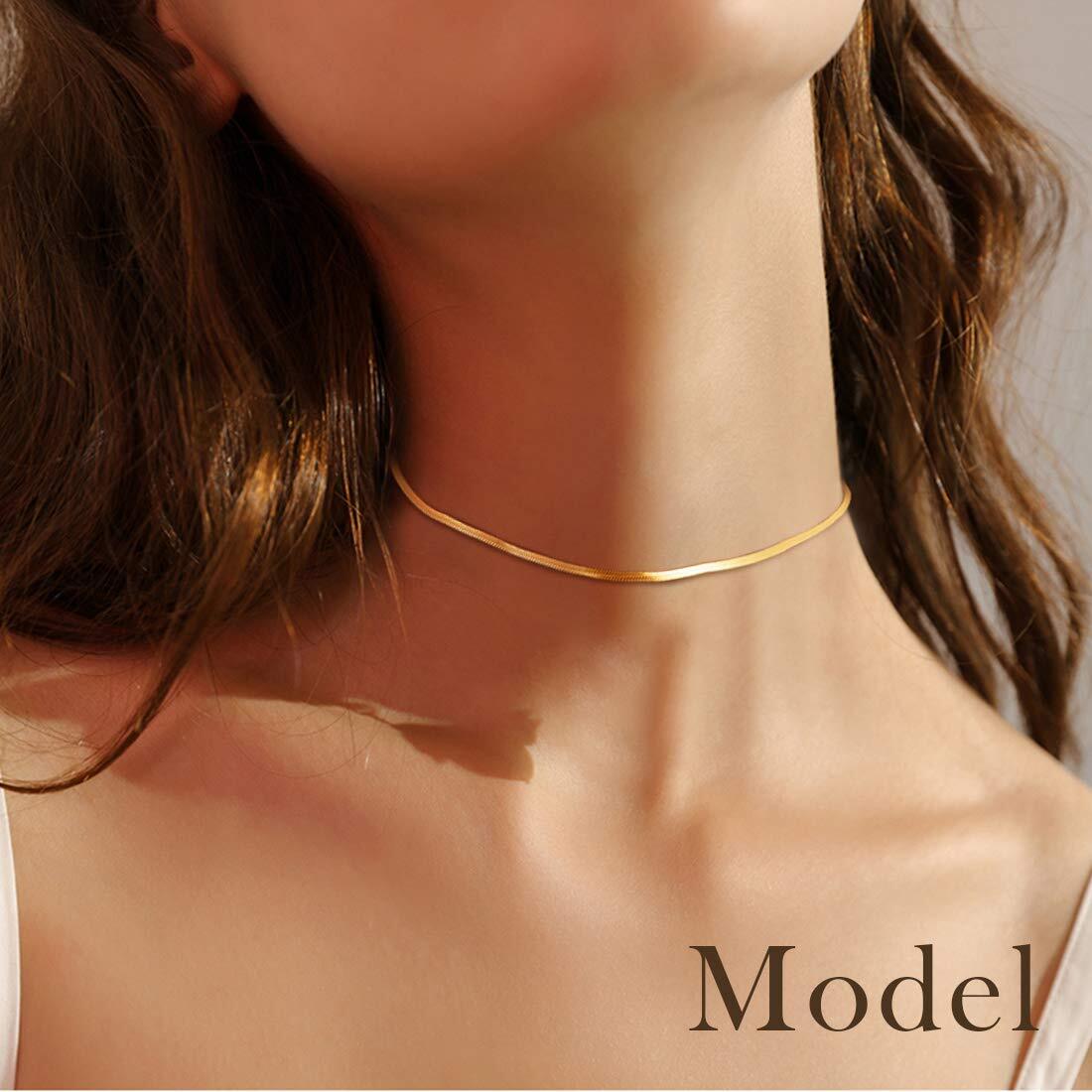 FindChic チョーカー レディース スネークチェーン ネックレス 32cm 18金 ゴールド シンプル 大人カジュアル おしゃれ 調整可 女性 アクセサリー