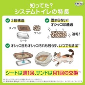 1週間ずっと、ニオイこもらない※1 シートは週1回、サンドは月1回交換でお手入れ簡単※1 ※1愛猫1頭(体重8kgまで)使用時。ウンチをした場合は早く取り除いてください