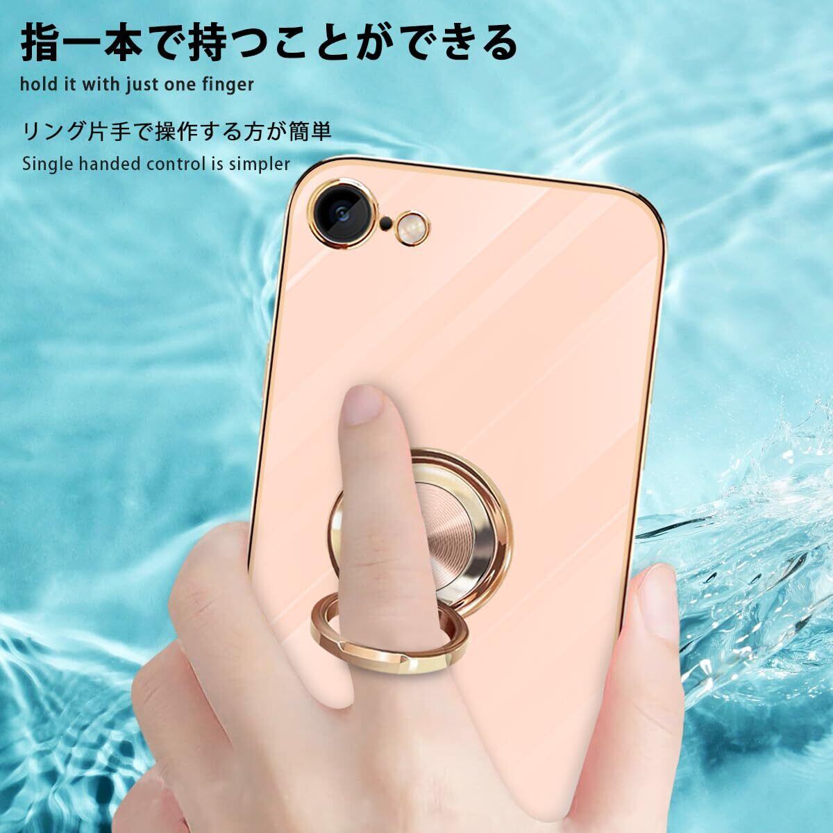 iPhone SE ケース iPhone第3世代 ケース iPhone第2世代 ケース iPhone8/7 ケース リング 耐衝撃 360°回転 スタンド機能 車載ホルダー対応 アイフォン SE3/SE2 ケース 一体型 携帯ケース 保護カバー レンズ保護 ストラップホール付き 4.7インチ (ピンク)