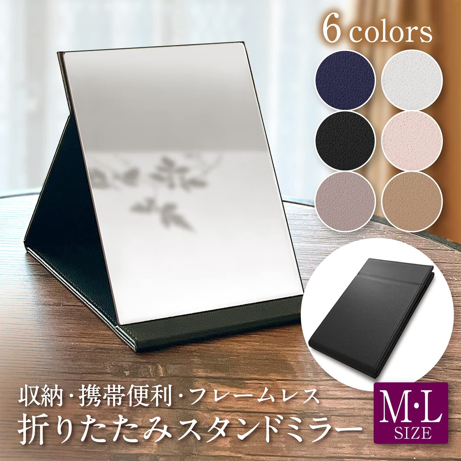 ICHIFUJI スタンドミラー 卓上鏡 卓上ミラー スタンドミラー 化粧鏡 角度調整自由 折り畳み (M, ブラック)