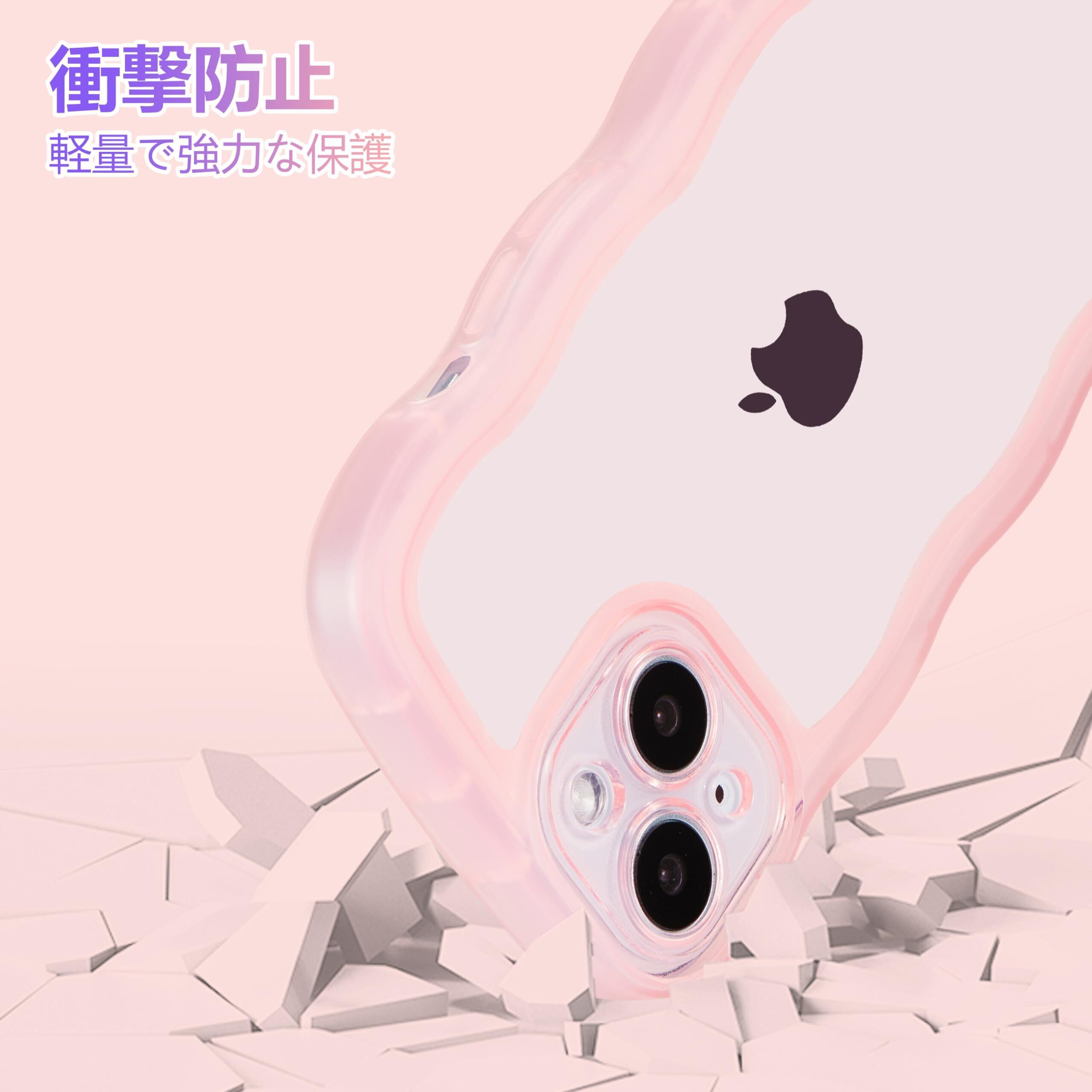 ZTOFERA iPhone 15ケース用、クリア透明可愛いうねうね波状フレームおしゃれデザイン、ソフトTPU滑り止め傷防止耐衝撃性の電話カバーiPhone 15ケース用、ピンク