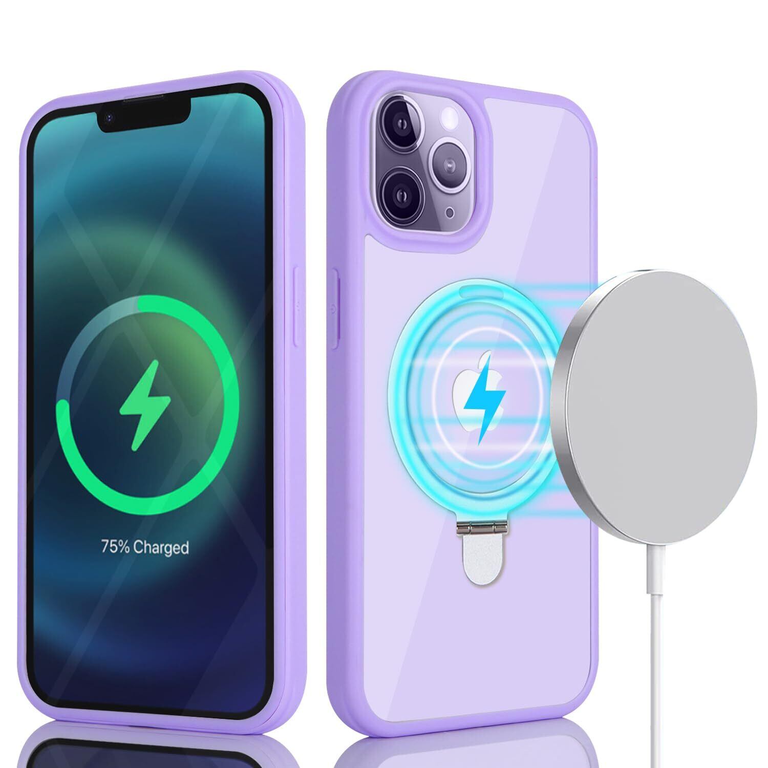 iPhone 11 ケース MagSafe対応 スタンドクリア 両面強化ガラスで全面保護 多機能スタンド 縦横両対応 米軍耐衝撃 半透明 リング付き ワイヤレス充電対応 マット感 黄変防止 アイフォン11用ケース (紫)