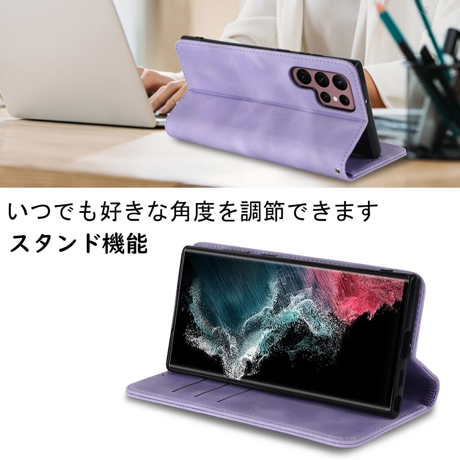 Havaya Galaxy S22 Ultra ケース ギャラクシーs22 Ultra ケース s22ウルトラ ケース 手帳型 au SC-52C カバー SCG14 ストラップ SC52C 耐衝撃 ドコモ サムスン samsung カード収納 SoftBank レザー スエードの質感-パープル