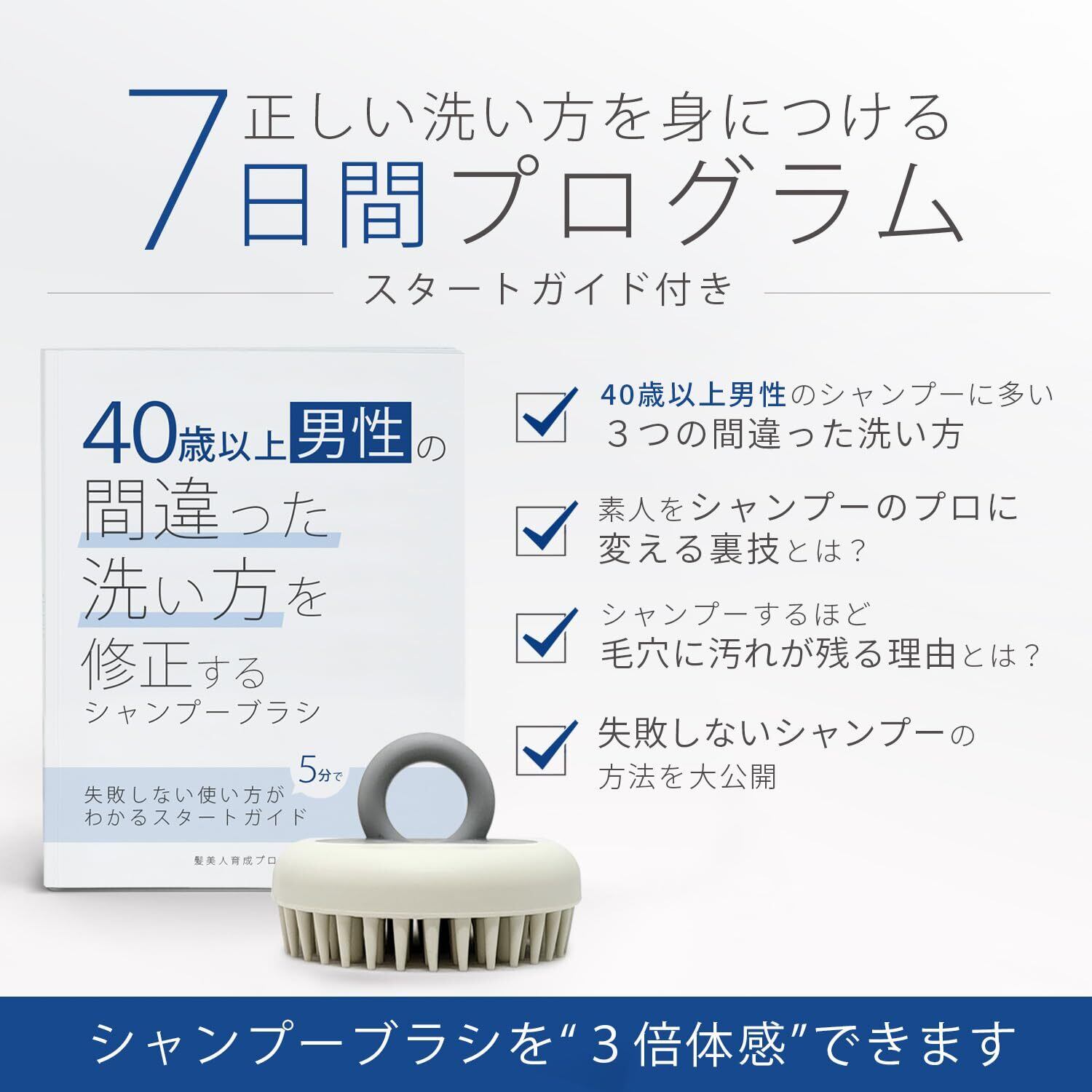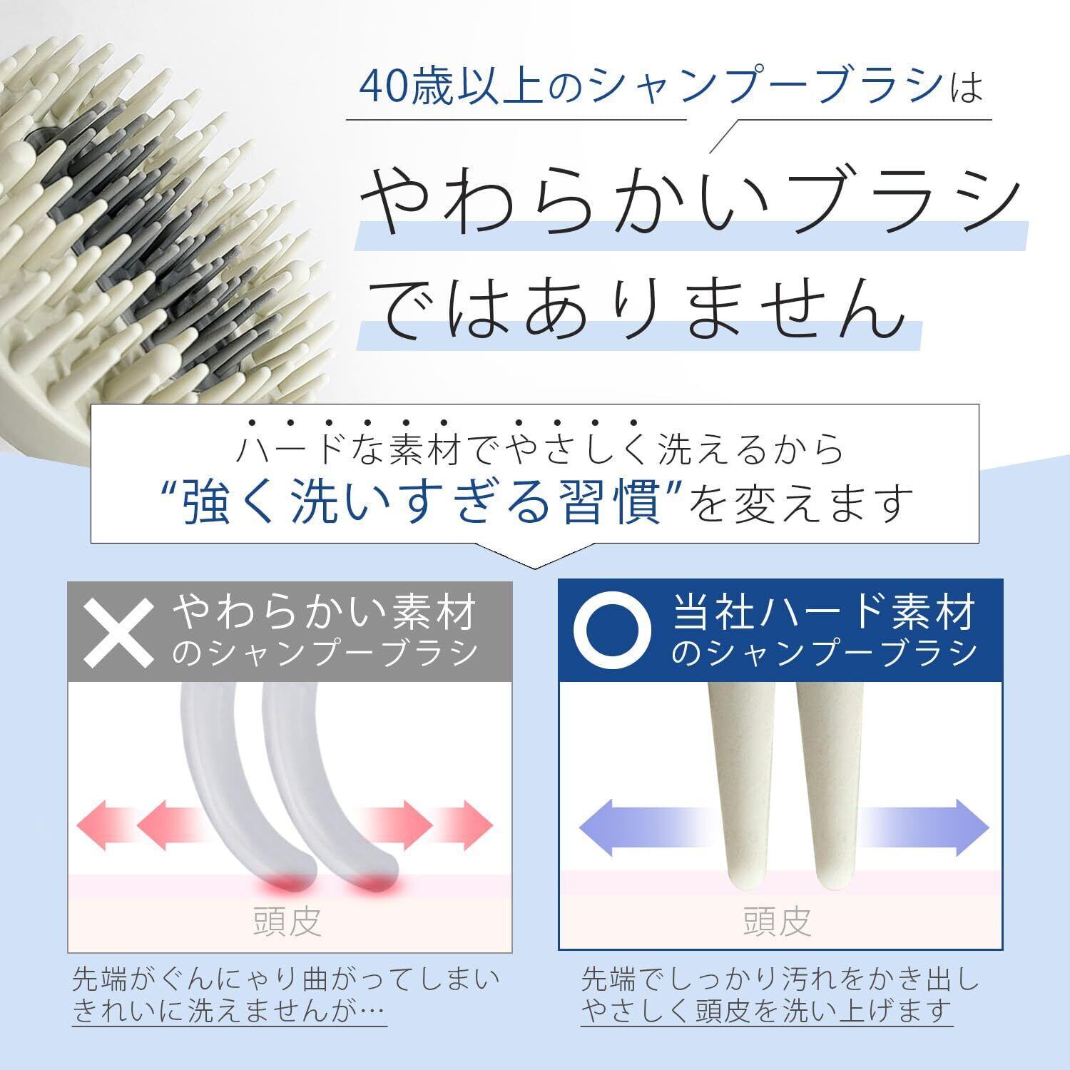 40歳以上男性の間違った洗い方を修正するシャンプーブラシ 洗髪用ブラシ スカルプ 頭皮ケア ヘッドケア 毛穴ケア 抜け毛対策 メンズ