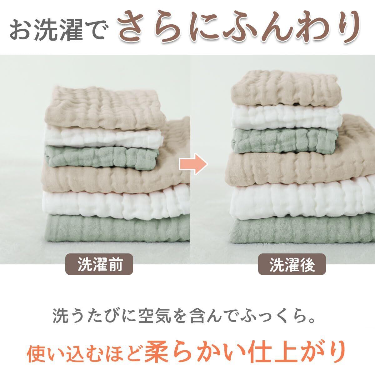 【綿100%&蛍光増白剤不使用】ふんわりやさしい6重ガーゼ。大切な赤ちゃんに使うものだから、柔らかく心地よい肌ざわりにこだわりました。産後で敏感になっているママのお肌にもお勧め。家族みんなでお使いいただけます。素材は、もちろん綿100%。ホワイトも蛍光増白剤を使っていない自然なカラーなので安心してお使いいただけます。