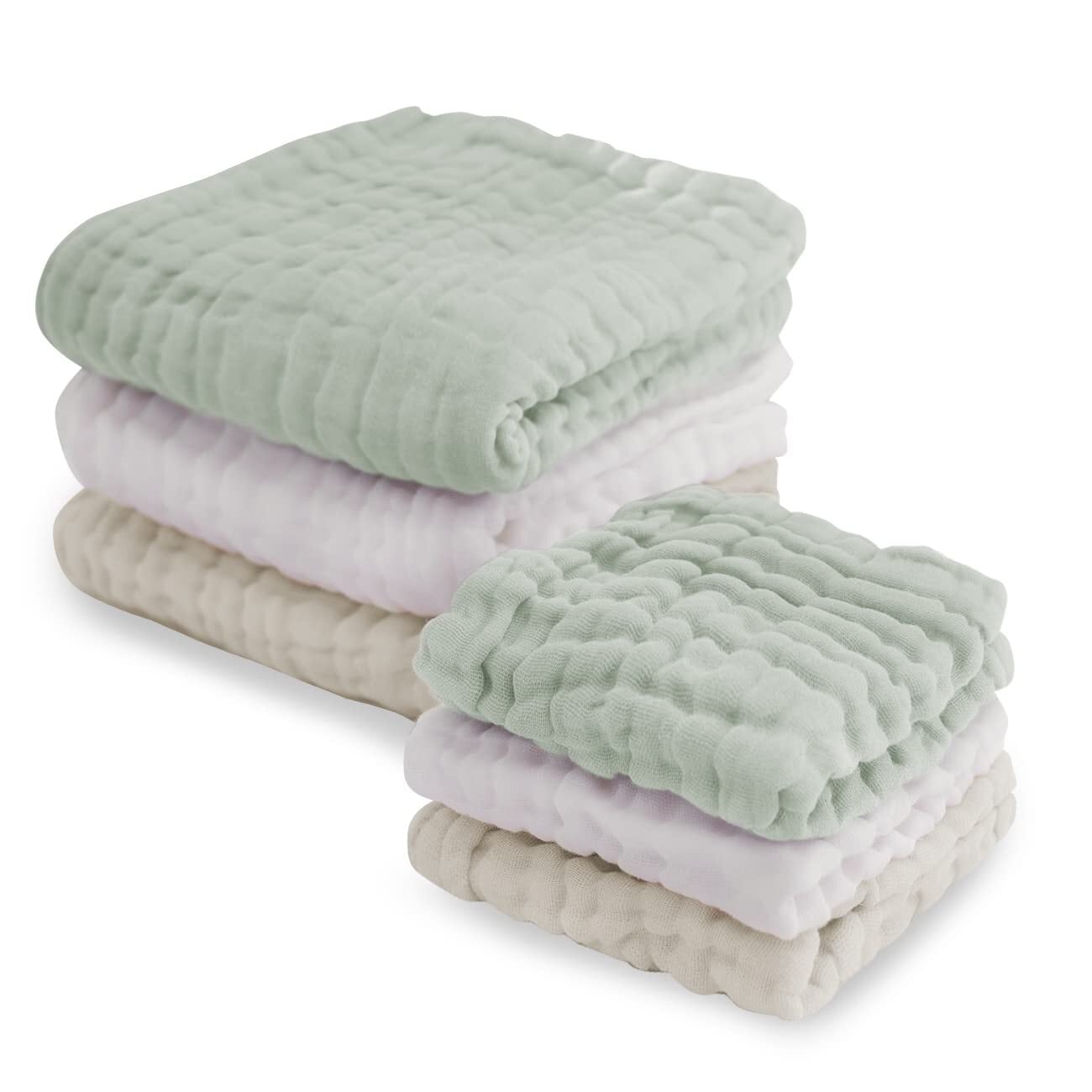 (ケラッタ) イブル 沐浴ガーゼ ハンカチ タオル ベビー くすみカラー 6枚セット (ハンカチ・タオルセット(グリーン ベージュ ホワイト))