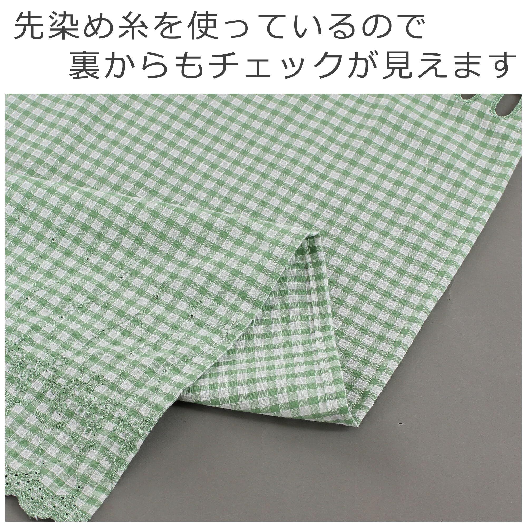 narumikk カフェカーテン フローラ 洋風 ギンガムチェック 自然素材コットン(サイズ:約幅100cm×丈90cm グリーン)16-015