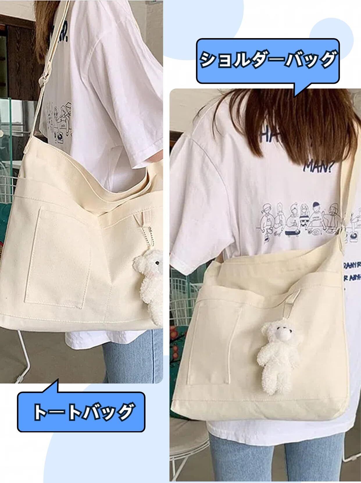 ミニマリズムとスポーツカジュアル:トートバッグとしても、肩紐の長さが調節できるので、お好きなスタイルでご使用いただけます。ショルダーバッグ、斜め掛バッグ、ハンドバッグ、ビーチバッグ、通勤バッグとして完璧に使用されています。注意:キャンバスバッグのぬいぐるみペンダントは含まれていません。