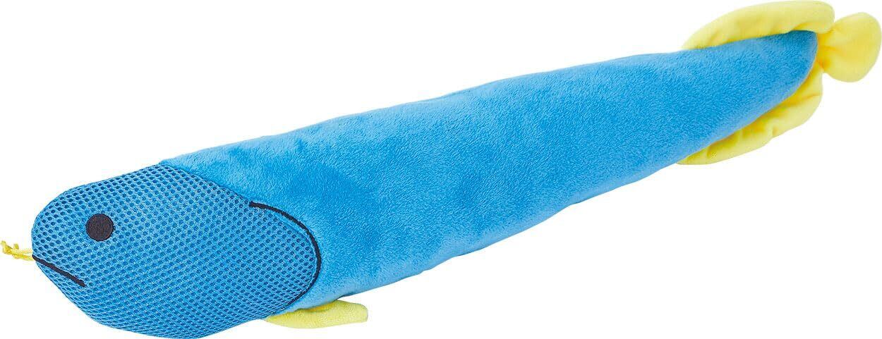 かわいいアロワナのけりぐるみ。ながーいからけりけりしやすい!歯の汚れがからまりやすいメッシュ生地!またたび入