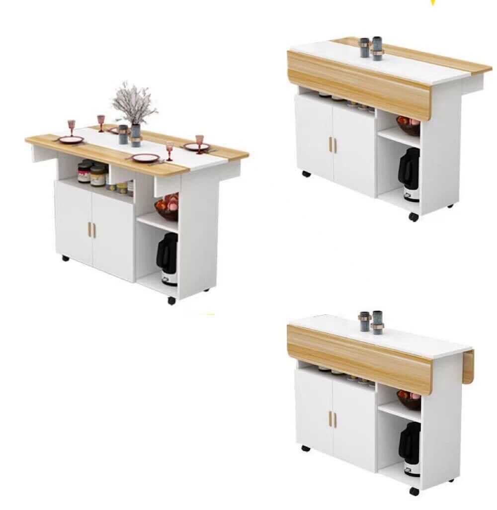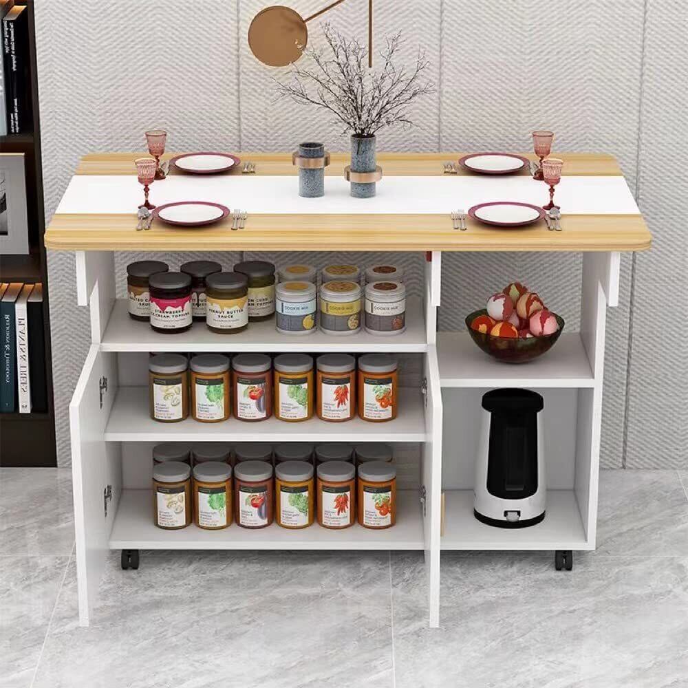 【キッチンの作業スペース拡大にも便利】折りたたみの可動天板はそれぞれが可動、固定できるので片側、両側好きなように広げられます。 キャスター付きで移動も簡単 扉付きのやオープンスペースなど、収納スペースもたっぷり。 棚板は可動出来るので、背の高いものから小物までしっかり収納出来ます。