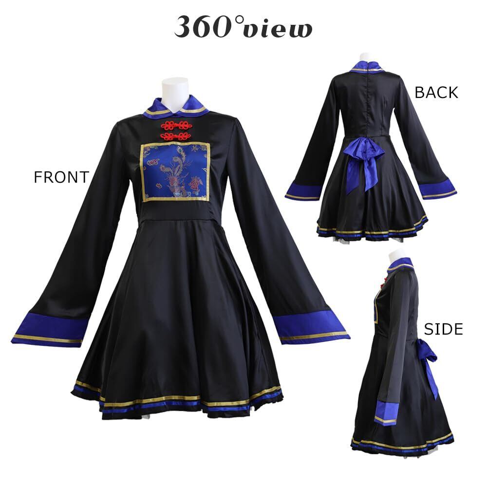 中華風の飾りをあしらった襟元に、中華柄の刺繍と上品な光沢感が特徴の生地は、高級感抜群。上品な光沢感のあるゴールドとブルーのラインもポイント。キョンシーらしい、ロングスリーブのデザインにもこだわりました。テーマパークやハロウィン、コスプレ、仮装パーティにはもちろん、結婚式の余興やイベントなどにもピッタリです。