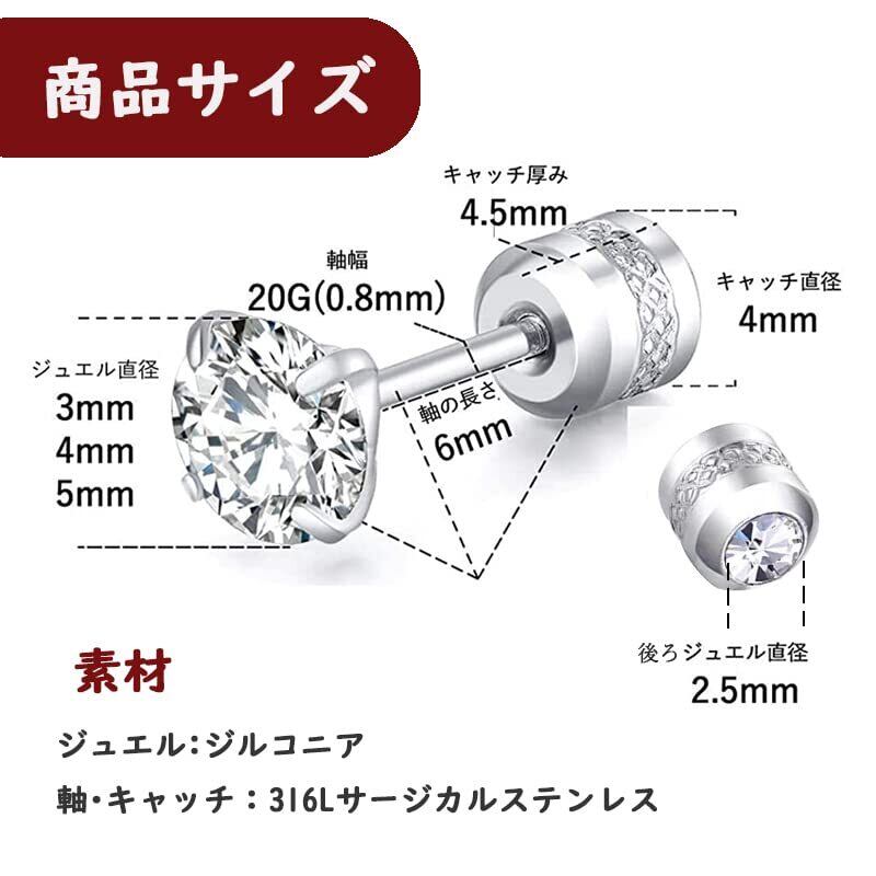 【ピアス】両耳用 材質:チタンステンレス 石:直径5mm 石の色:透明 2個セット(1ペア)