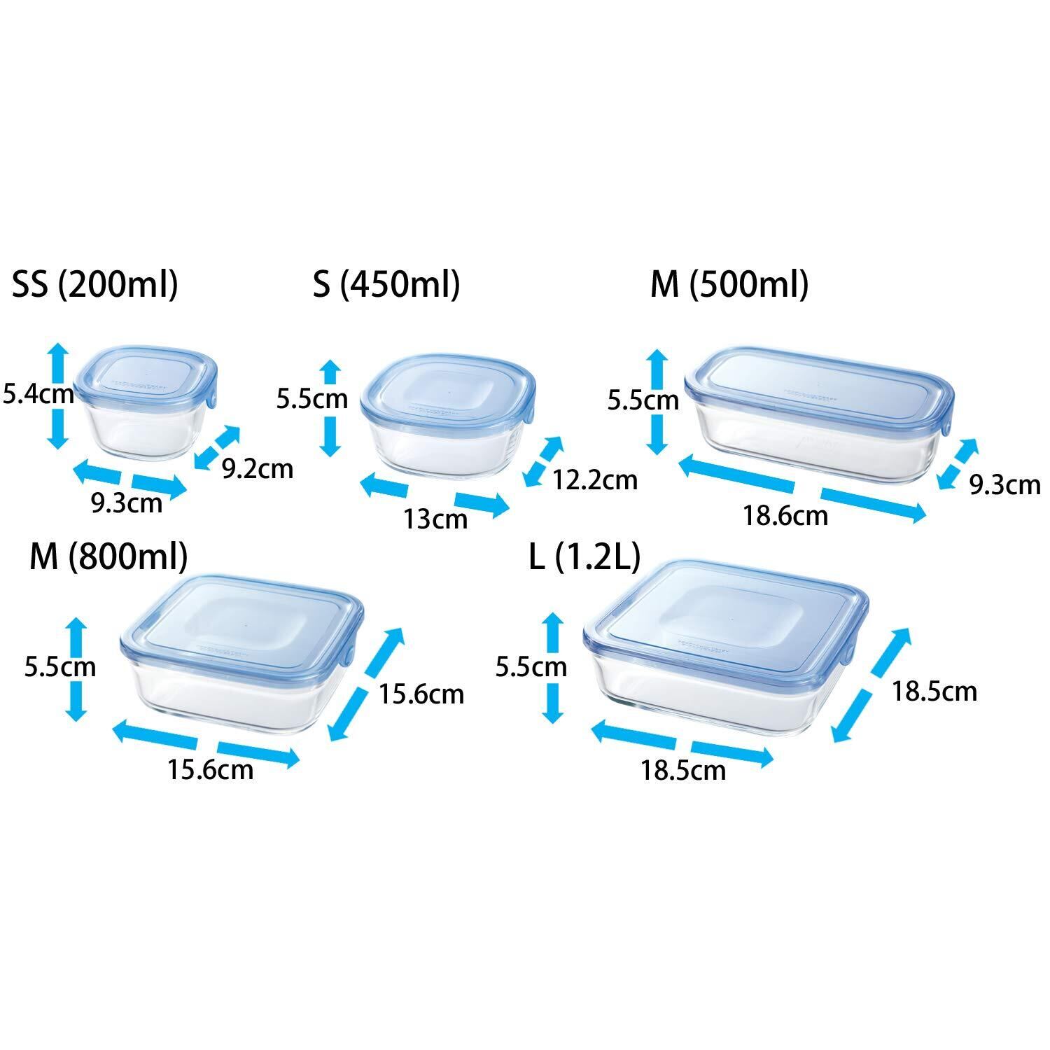 iwaki(イワキ) 耐熱ガラス 保存容器 バターケース アクアブルー 長方形 M 500ml ×4個セット パック&レンジ KBC3246-BLN