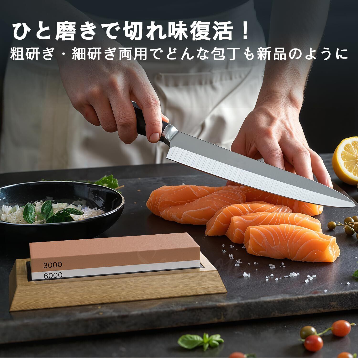 【初心者プロ向き】この研ぎ石は、角度固定用刀補助具付きのでプロはもちろん、初心者の方でも簡単に使いこなせる。または、高級竹砥石台つきので、従来のゴムの滑り止めと比べ、研いでいる最中に包丁が手元からずれて大事故になるのを防げます。とても安心てきます