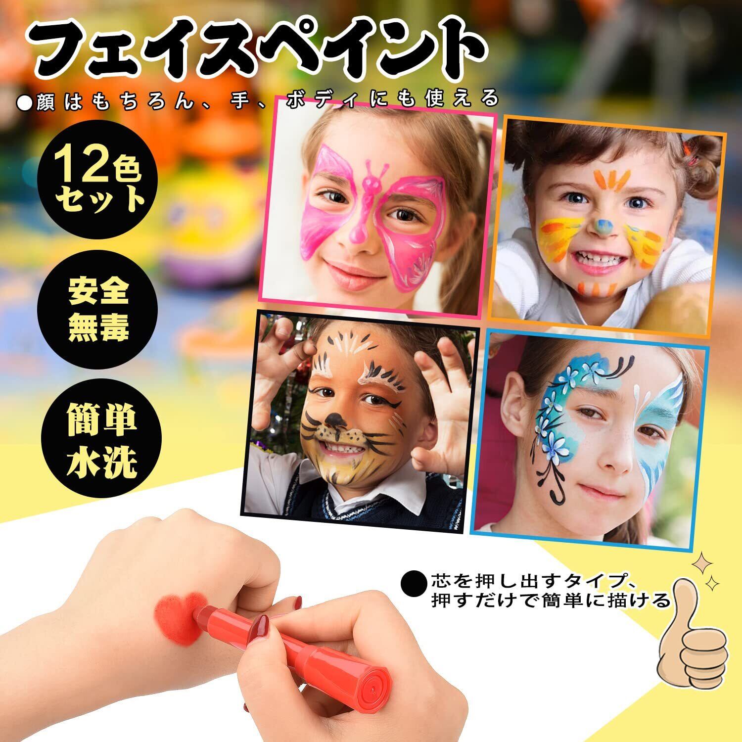 フェイスペイント 12色 ボディペイント マタニティペイント クレヨン 顔ペイント クリスマス 安全 エコー 無毒 簡単水洗 子供使用できる 絵の具 クリスマス 仮装 コスプレ ハロウィン マタニティフォト ベリーペイント 小道具 スポーツ応援
