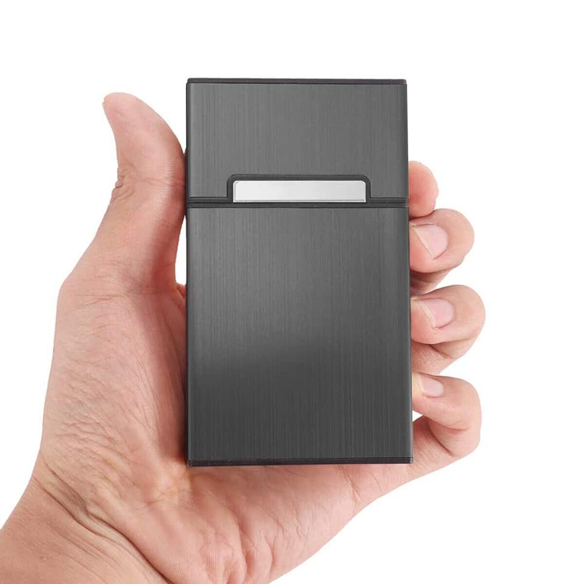 タバコケース メタルシガレットケースは 収容できます 20本収納 アルミ 軽量 破損防止 防水 防湿シガレットケ 煙草ケース 煙草 保護 カバ男女兼用 携帯灰皿 93MM/55MM (ブラック)