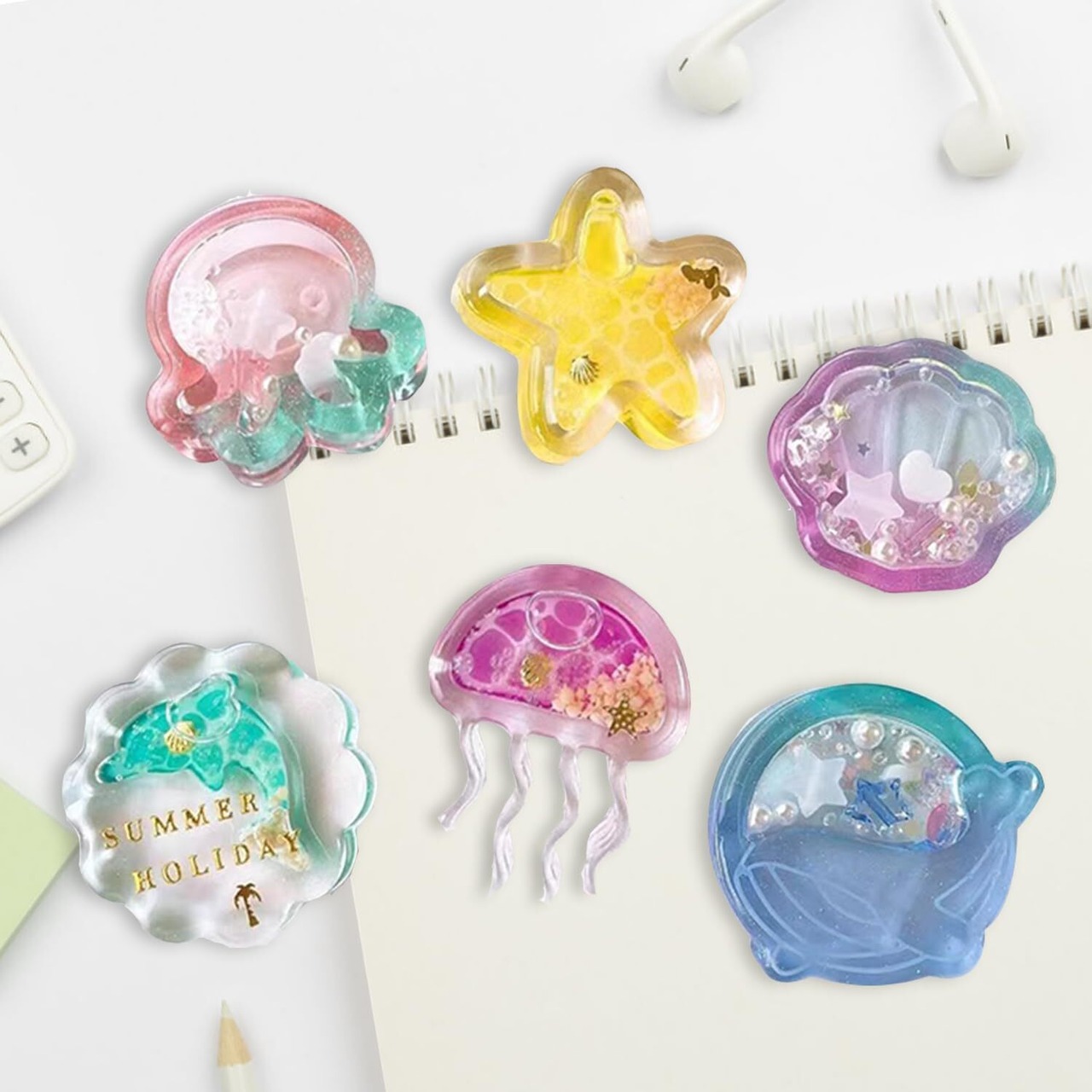 レジン型 シリコンモールド8 種類流砂型シェイカーモールド UVレジン シャカシャカ クラゲ 貝殻 星 シリコン型 モールド DIY 手作りキーホルダー イヤリング ペンダント アクセサリー モールド | yankees