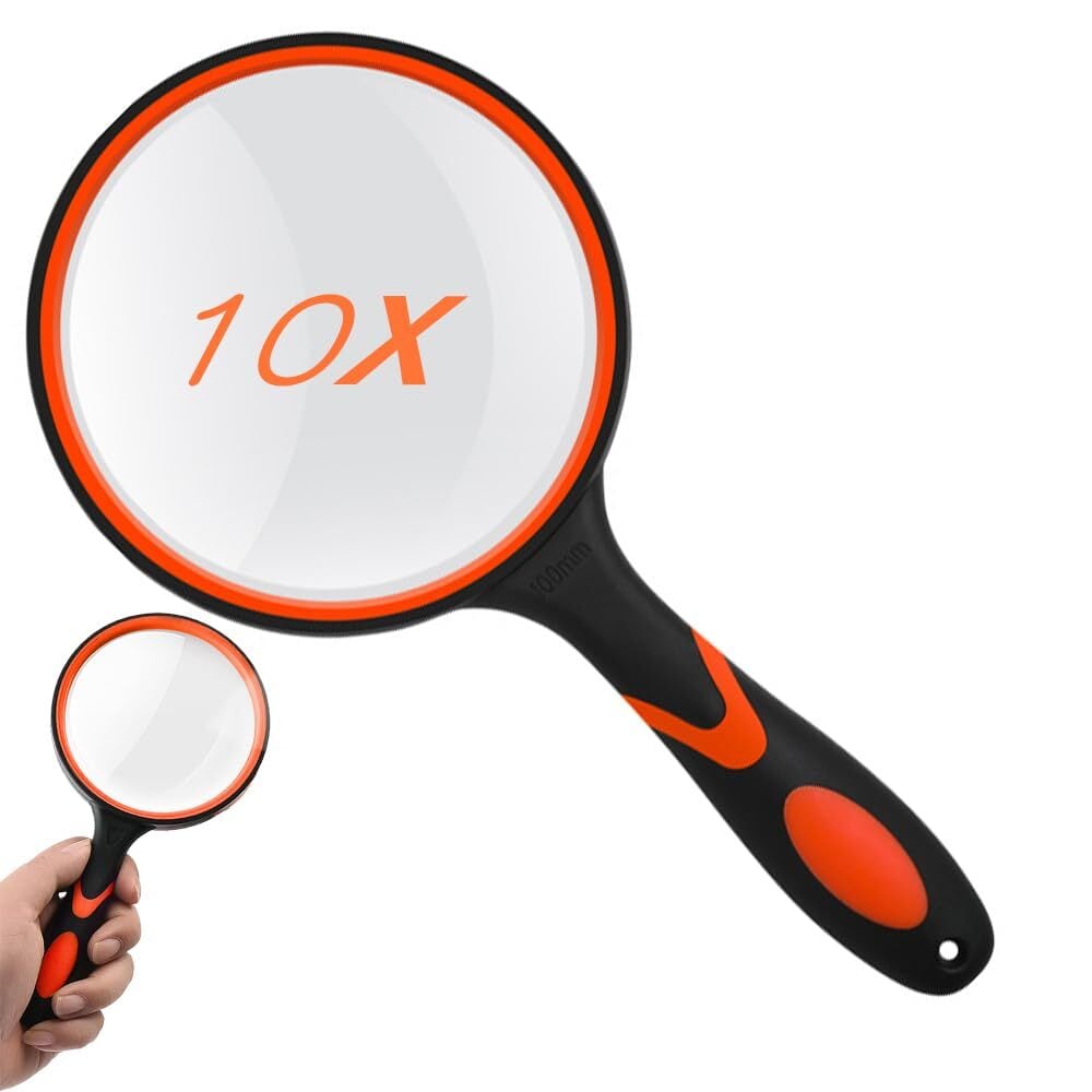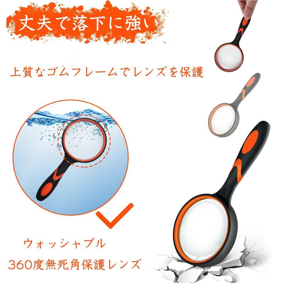 手持ちルーペ ビッグルーペ 拡大鏡 虫眼鏡 レンズ径100mm 高倍率タイプ 10倍拡大 手持ち読書拡大鏡 携帯便利 見やすい 高齢者及び専門家使用可能 趣味観察/新聞/読書/地図/科学教室に使用 (オレンジ) | yankees
