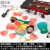 【簡単な製造】このエポキシ樹脂キーホルダー作り方はとても簡単です。樹脂をシリコンモールドに入れ、キラキラ、ドライフラワー、インクなどを追加するだけで、ユニークなギターピックを作ることができます。