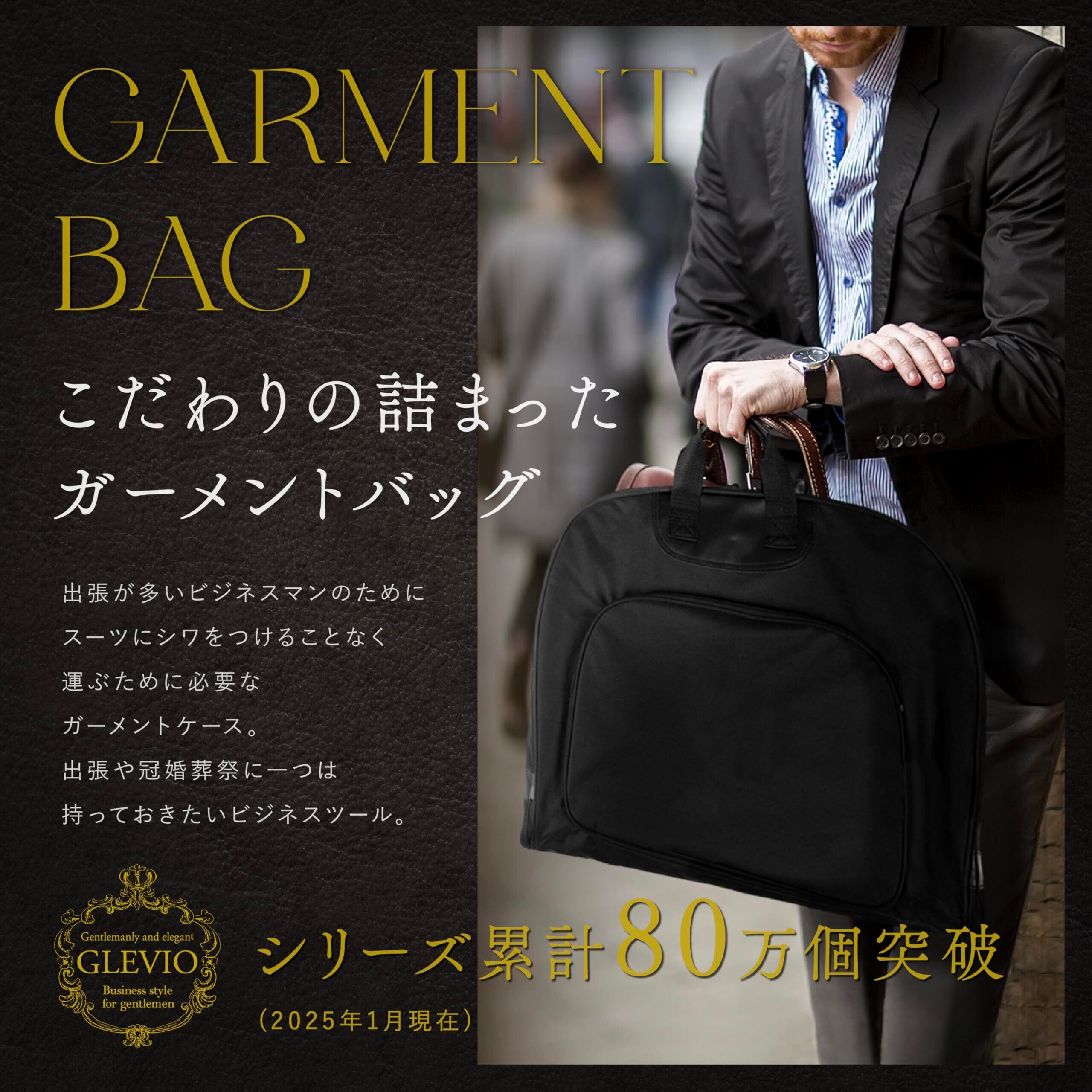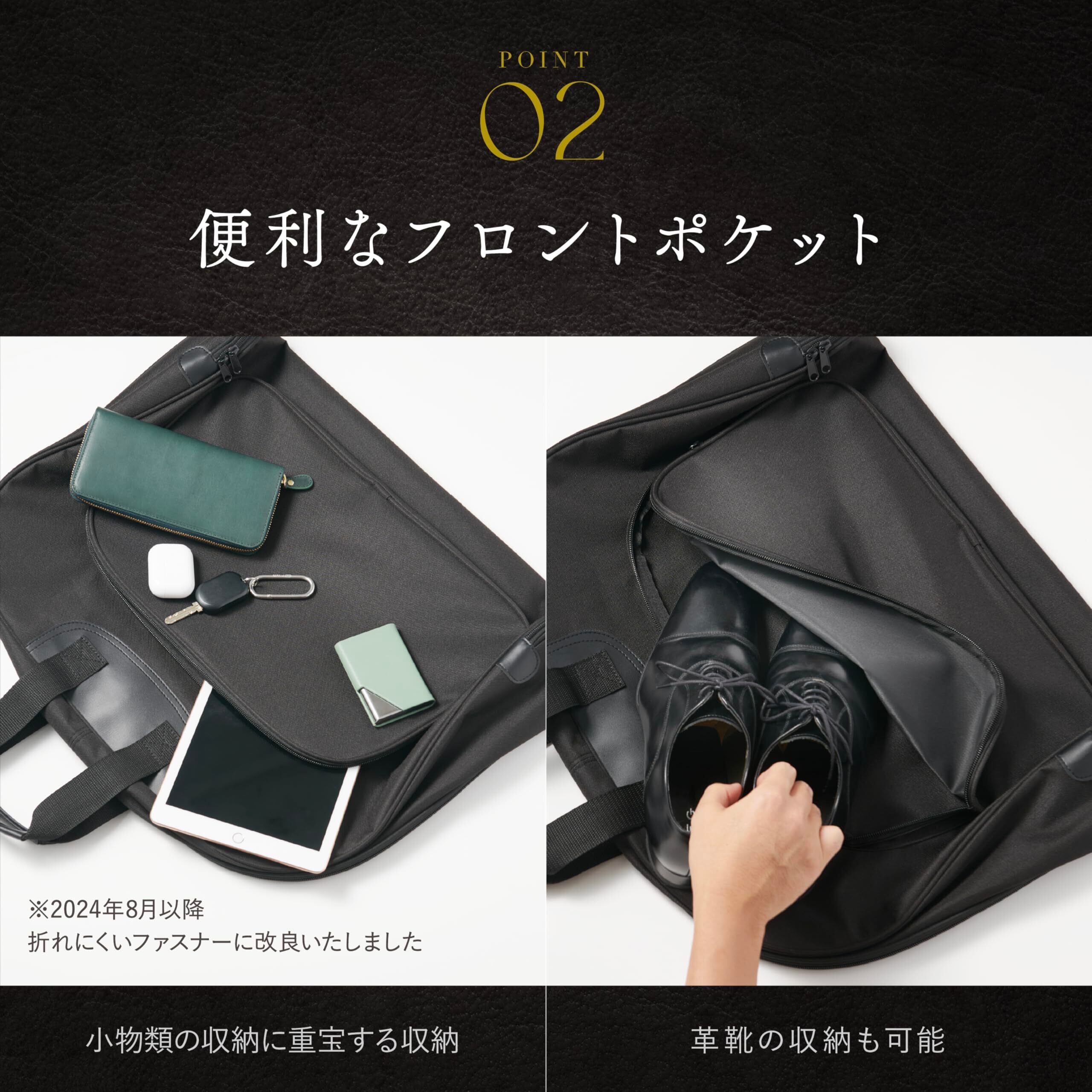 [グレヴィオ] 一流の鞄職人が作る ガーメントバッグ 防水 型くずれ防止 ポケット付き ハンガー ハンガー付き 1着用 2着用 ガーメントケース 0L 43 cm ブラック 冠婚葬祭 出張 スーツ 持ち運び 靴 靴収納