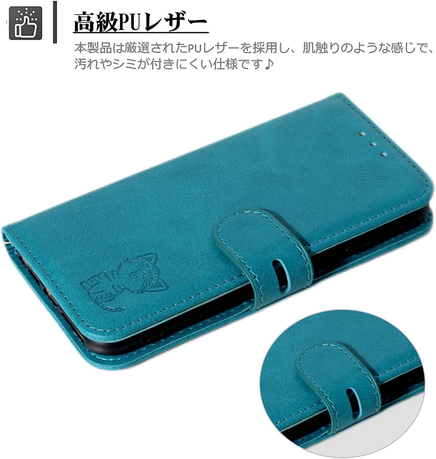 Galaxy A55 5G ケース 手帳型 SC-53E SCG27ケース 手帳型 ギャラクシーA55 ケース 手帳型 かわいい 猫 ネックストラップ付き カードポケット付きSC-53E手帳型 Galaxy A55 5G スマホケース TPU スタンド 機能 薄い 軽い かっこいい 高質感 (Galaxy A55 5G,ターコイズ)