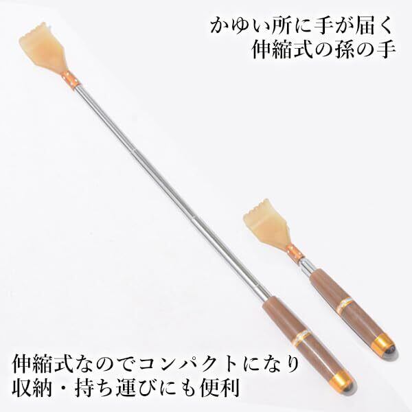 ・痒い所に手が届く伸縮式の孫の手です。 ・肌に優しく、程よく気持ちいい樹脂製になっています。 ・マッサージボール付きです。 ・伸縮式なのでコンパクトになり、持ち運びが便利になっています。 【商品仕様】 カラー ブラウン 素材 樹脂