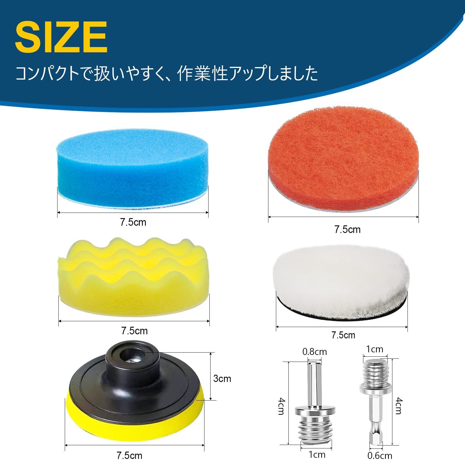 75mm 22点セットポリッシャー バフ 精練パッド 研磨パット スクラブパッド ぽりっしゃースポンジ 付き マジックパッド 電動ポリッシャー、掃除用セット、円形の軸、六角軸付き 鏡面仕上げ、金属、木材、ドリル、研磨機、水垢取りに、さび落とし、浴室掃除、研磨艶出し | yankees