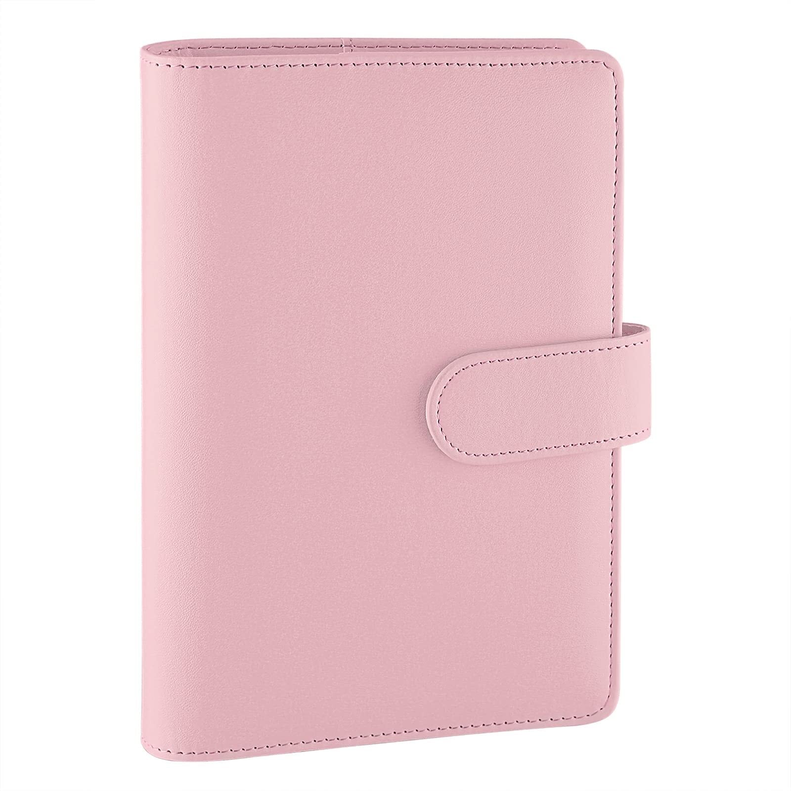 Antner A6 PUレザー ノートブックバインダー 6リング 詰め替え可能 予算バインダーカバー A6リフィル用紙用 ルーズリーフ パーソナルプランナーオーガナイザー 磁気バックル付き 学校 オフィス 旅行 フォトカード用 ピンク