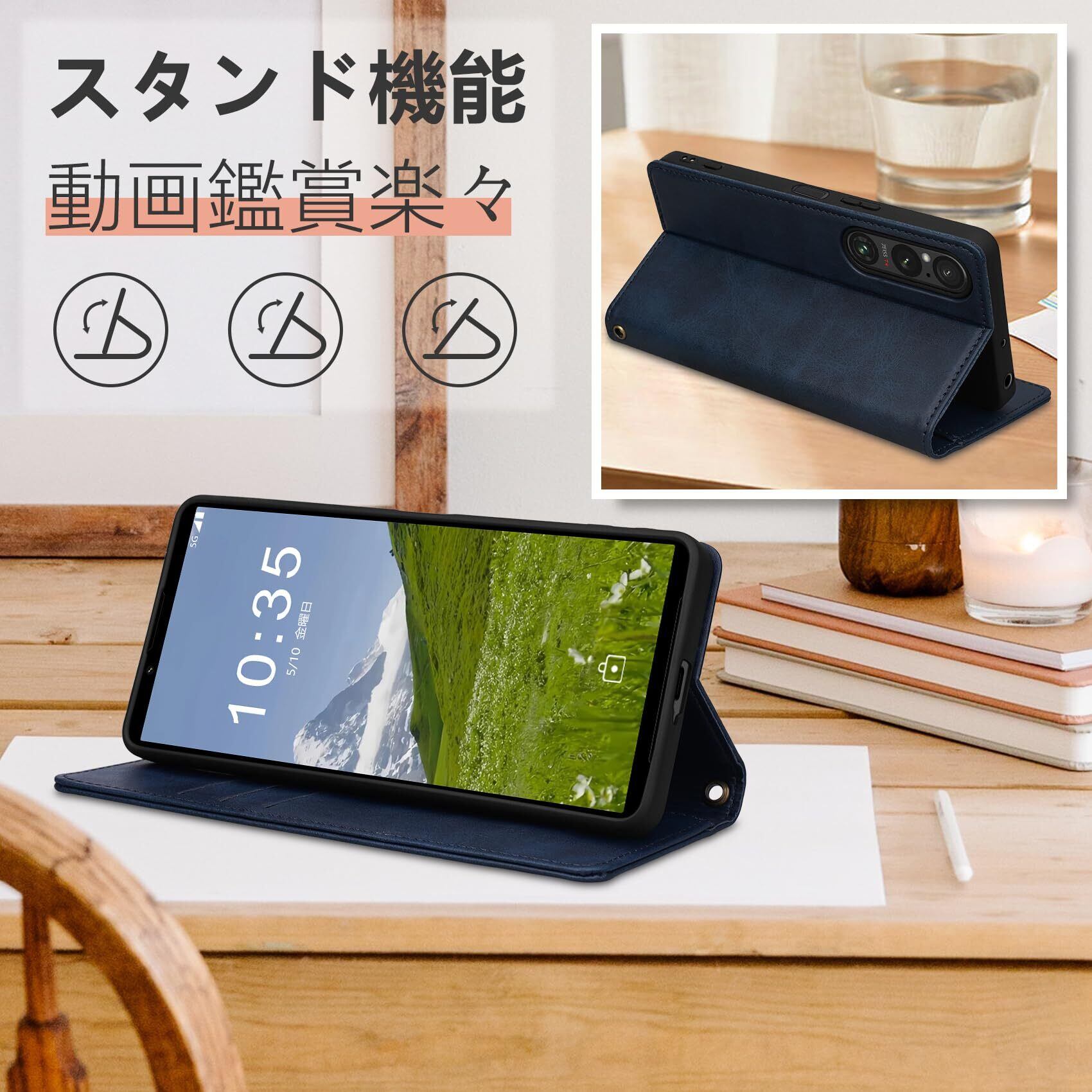 Rssviss Xperia 1 VII ケース 手帳型 エクスペリア1 vii 手帳型ケース マグネット式 カード収納 Xperia 1 マーク 7 手帳カバー 6.5インチ W1 ダークブルー