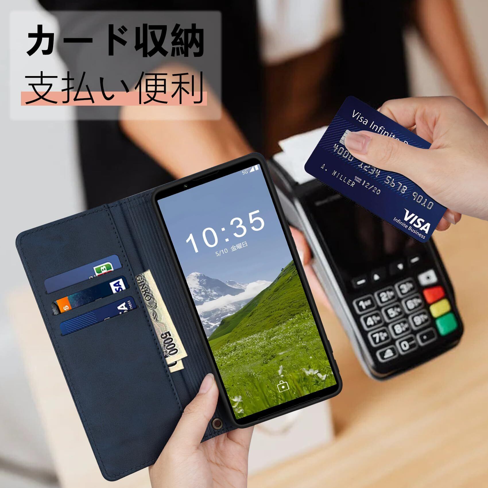 カード収納:Xperia 1 VII 手帳型ケースの内側にはカード入れのポケットが付くため、クレジットカード十IDカードの収納に使用し、外出時はこのケースを携帯するだけで十分、日常の生活に便利です。なお、厚みのあるカード収納や、収納数により厚みがあるとフタが閉まらない事がございます。予めご了承下さい。