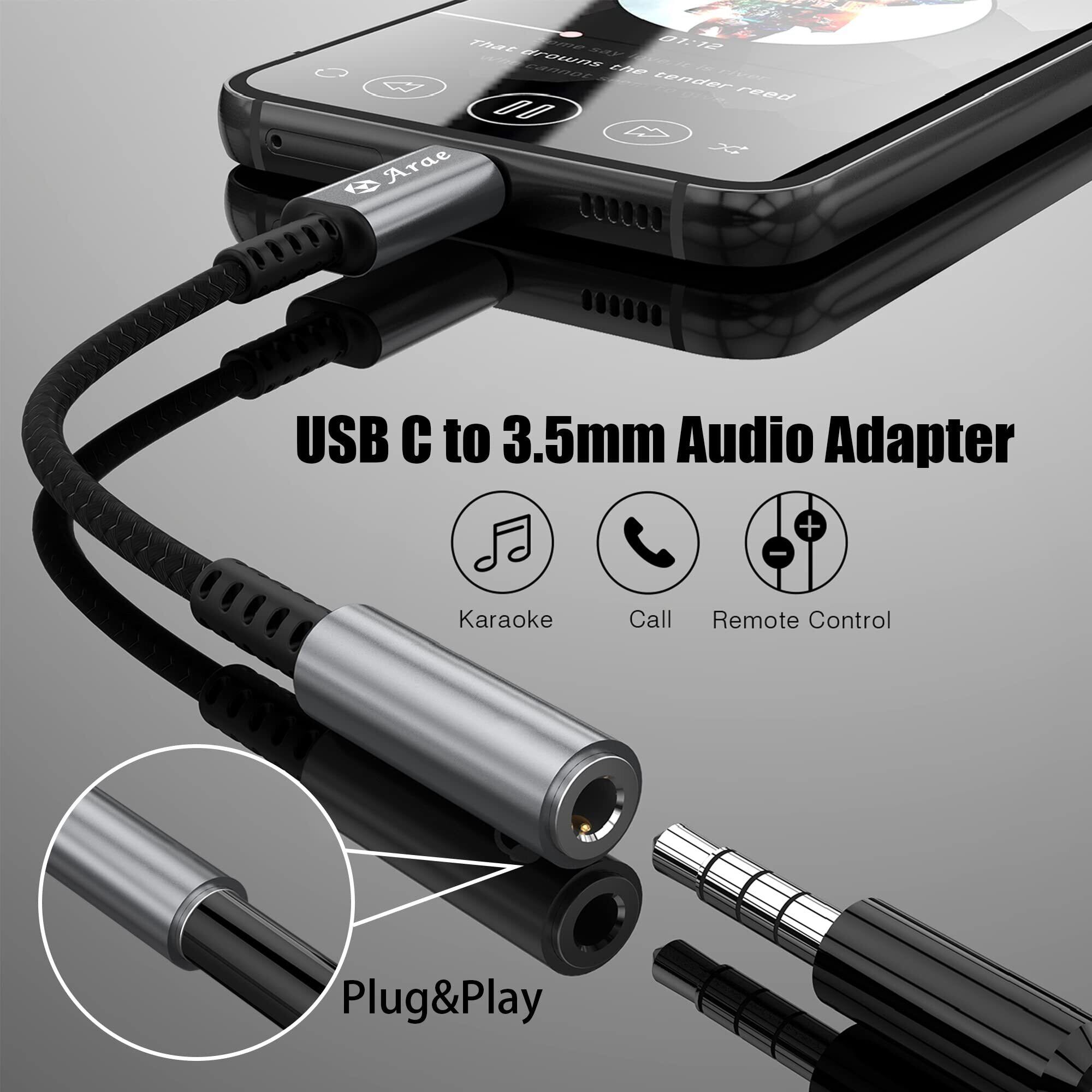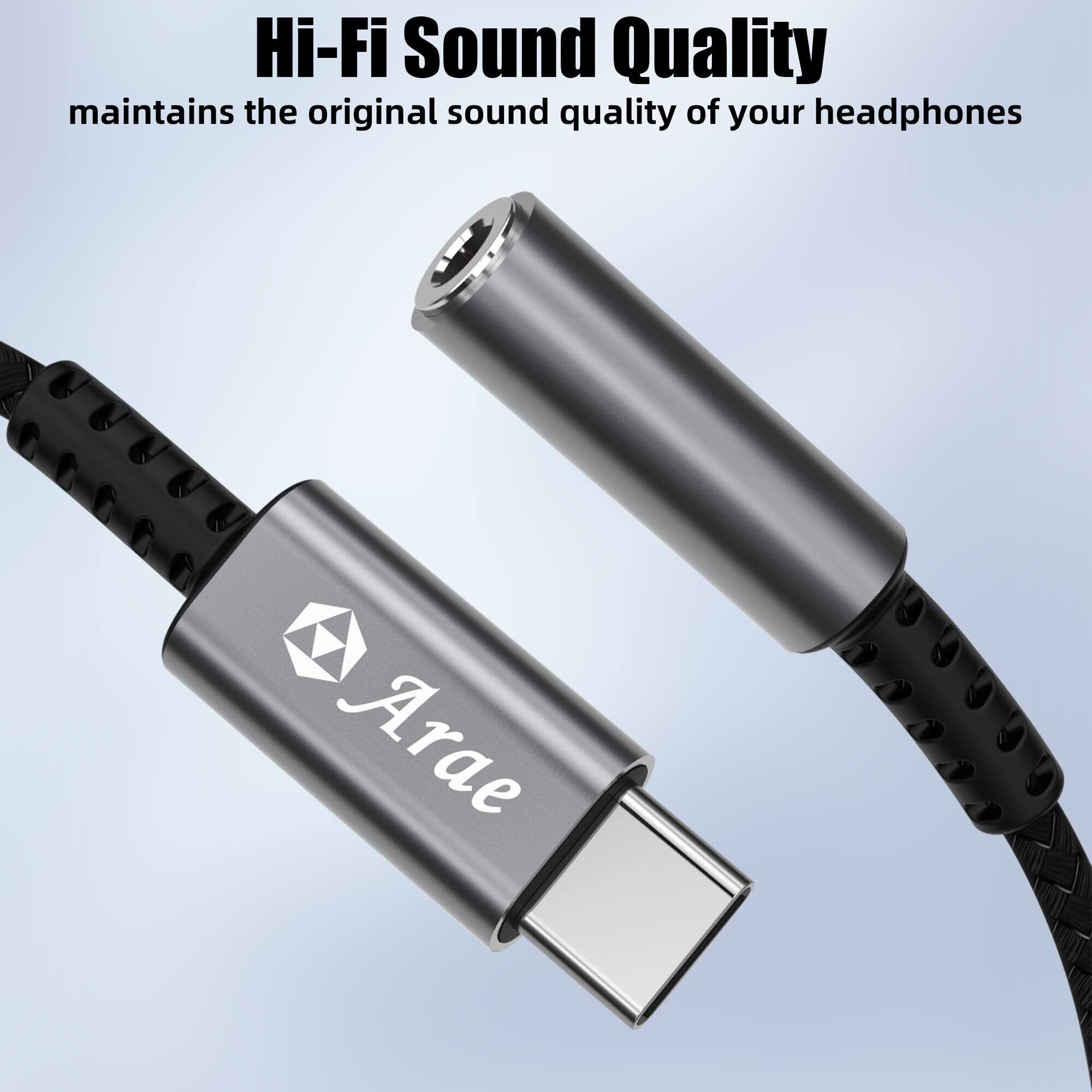 イヤホンジャック変換器 ヘッドホン アダプター 3.5mm USB Type-C to ヘッドフォンジャックアダプタ - USB Type-C to 3.5 mm イヤホンアダプター Arae 編組ナイロンケーブル DAC搭載 HIFI音質 iPhone 15/Pro/iPad Pro/MacBook Pro/XperiaなどのUSB Cデバイスに対応 (グレー)