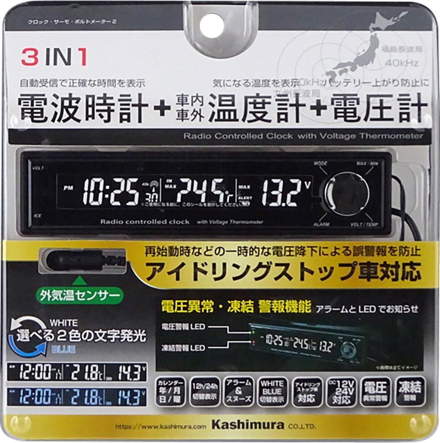 カシムラ(Kashimura) クロック・サーモ・ボルトメーター温度計 電圧計 白/青切り替え 文字発光 3mロングケーブル 金属ステー・両面テープ付属 NAK-214