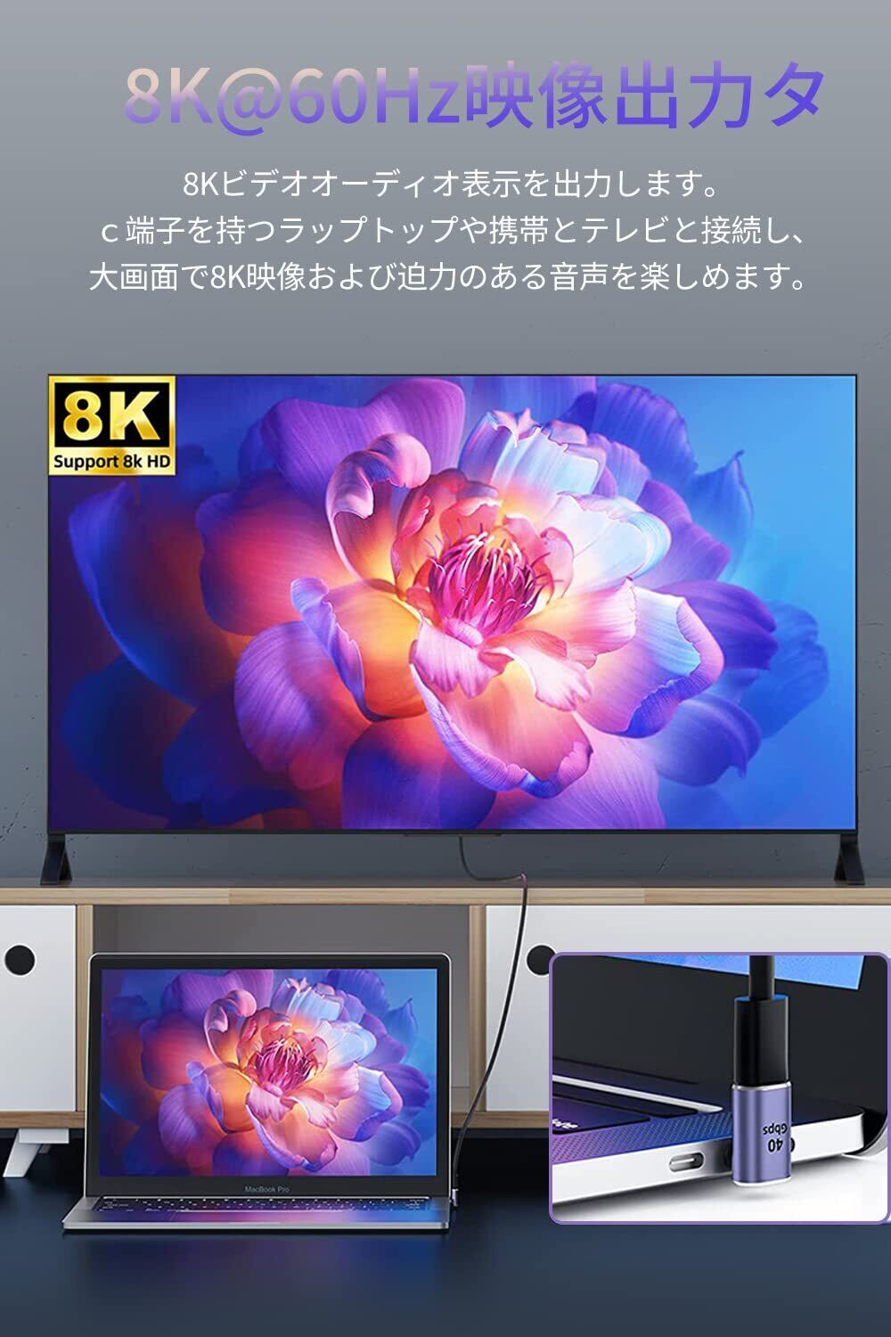 USB4.0 Type C 変換 アダプター 左右 90° 曲げ3種類セット PD 100W/5A急速充電 40Gbps高速データ転送 8K@60Hz映像出力 L字 L型 タイプc type-c 90度 オス メス USB C コネクター スリムデザイン Thunderbolt 3、Mac Book 、Nintendo Switch、Sam sungなどのType Cデバイスに対応