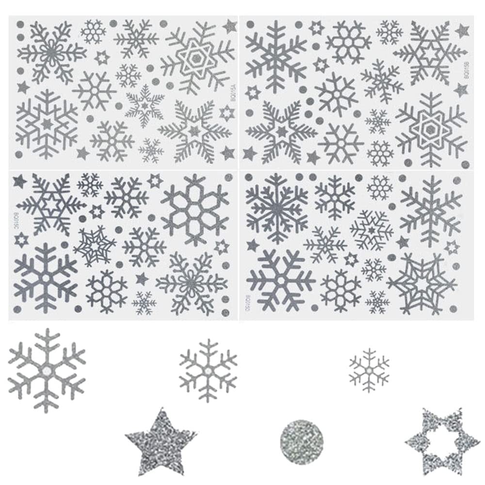 クリスマス 静電ステッカー (30* 20.5cm/4枚) クリスマス飾り ウォールステッカー スノーフレーク静電ステッカー 雪花飾り 雪の結晶シール ガラスシール 窓ー (銀) PVC再利用可能な 剥がせる壁紙 手芸 デコレーション/ショップデコレーション用/冬 飾り 雰囲気満点 | yankees