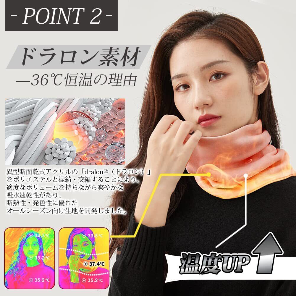 【36℃恒温・温活】機能性繊維のドラロンを使用、特別ばドックボーン形状であったか空気層をたくさん作り、着けられた瞬間8℃プラスにして、ネックがずっと36℃で恒温してます。「温活」ネックウォーマーで活躍しております。
