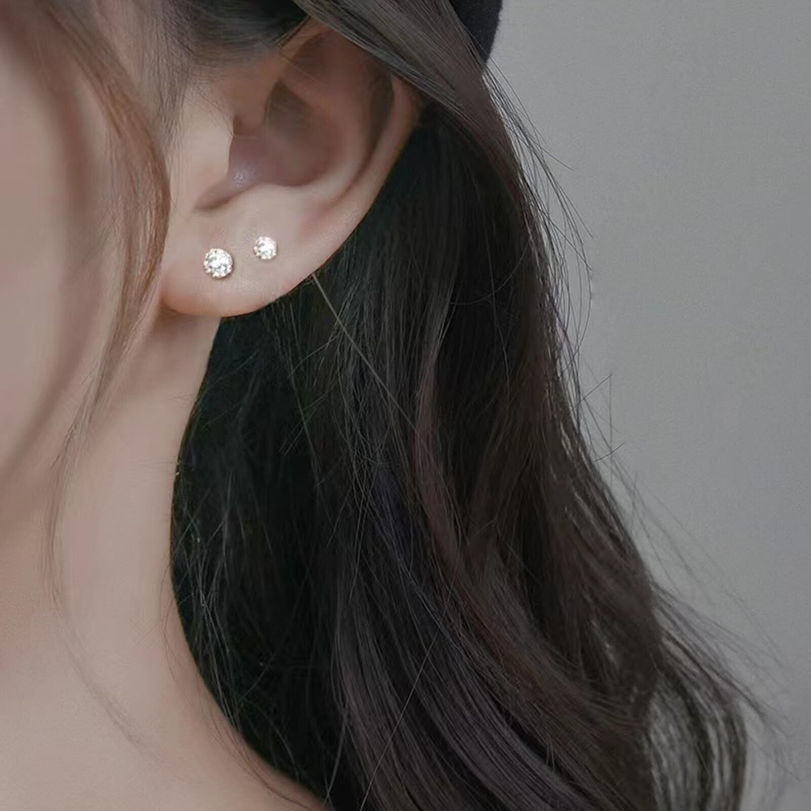 YEENKE ピアス レディース 丸 ピアス シンプル 5mm シルバー キラキラ メンズピアス サージカル純チタン 軟骨ピアス スタッドピアス つけっぱなし ネジ式 ジュエリー 男女兼用 両耳用 キャッチ 人気 おしゃれ プレゼント ファーストピアス ブラック 2個セット マル
