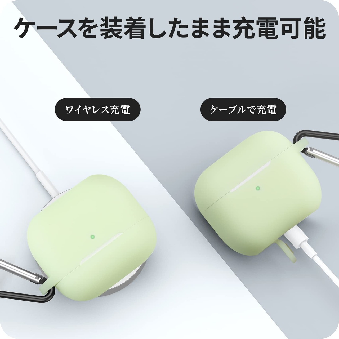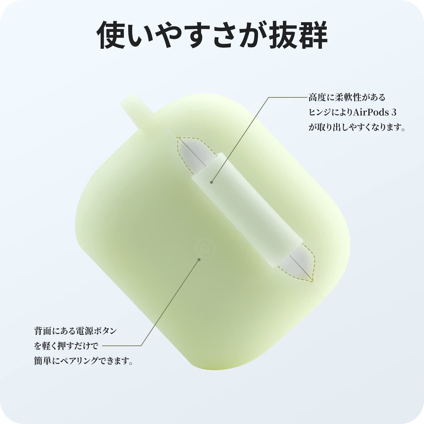 NIMASO ケース AirPods 3 ケース 2021 AirPods 第3世代 専用カバー エアーポッズ 3世代 シリコン 保護 ケース カラビナ付き ワイヤレス充電対応 (夜光グリーン) NEC22C447 | yankees