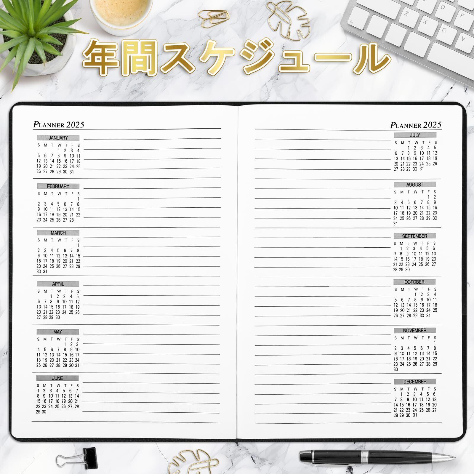 【2025日手帳】1日につき1ページ分たっぷり記入できるデイリー(DAILY)タイプの手帳(土日1ページ2日)、時間軸が付いてるので予定も細かく管理でき、スケジュール管理システム手帳・スケジュール帳・日記帳に最適です。