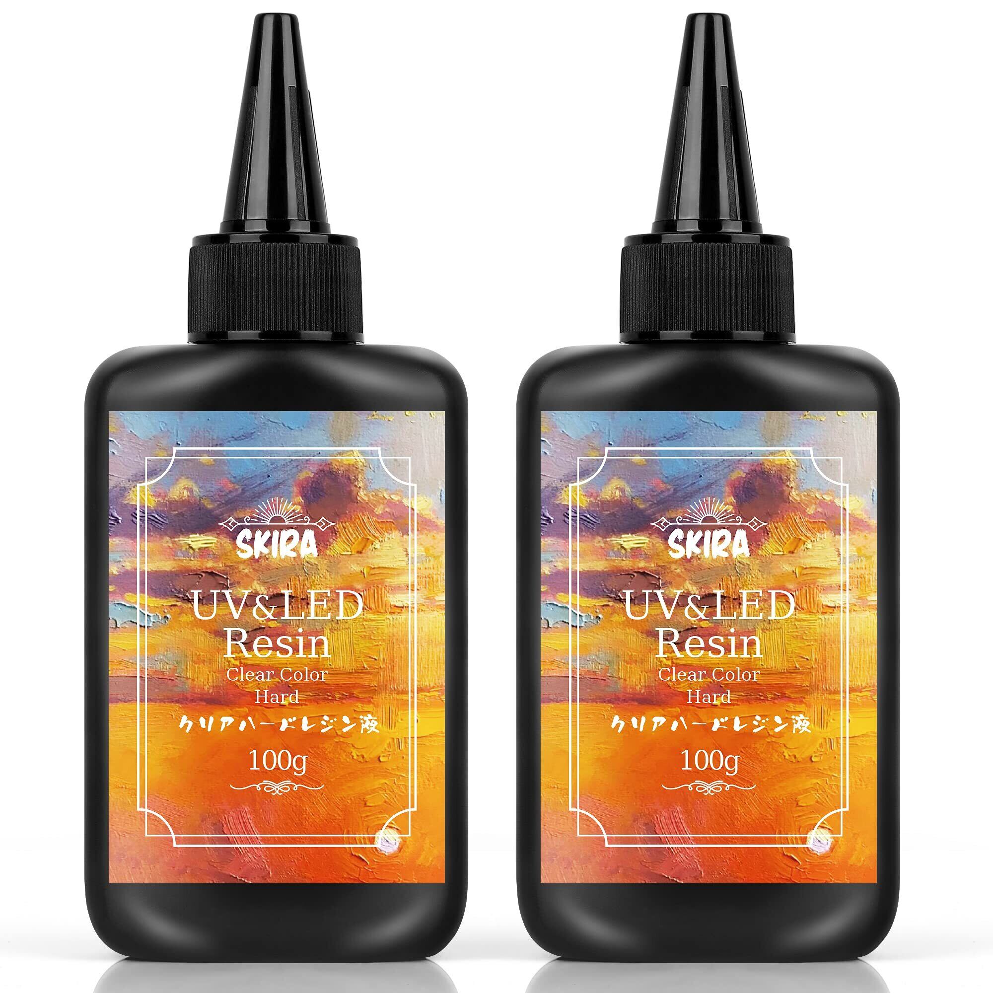 SKIRAオリジナルUV-LEDレジン液、クリアハードタイプ、たっぷり使える200g(100g×2本)。圧倒的なコストパフォーマンス!