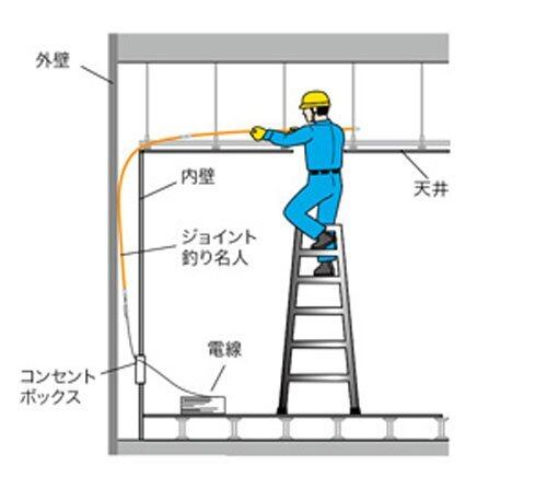 ●呼線・通線・配線工事の省力化(ロッド継ぎ足し&秒速結線システム)中空壁・狭い天井・ケーブルラックなどの通線に最適