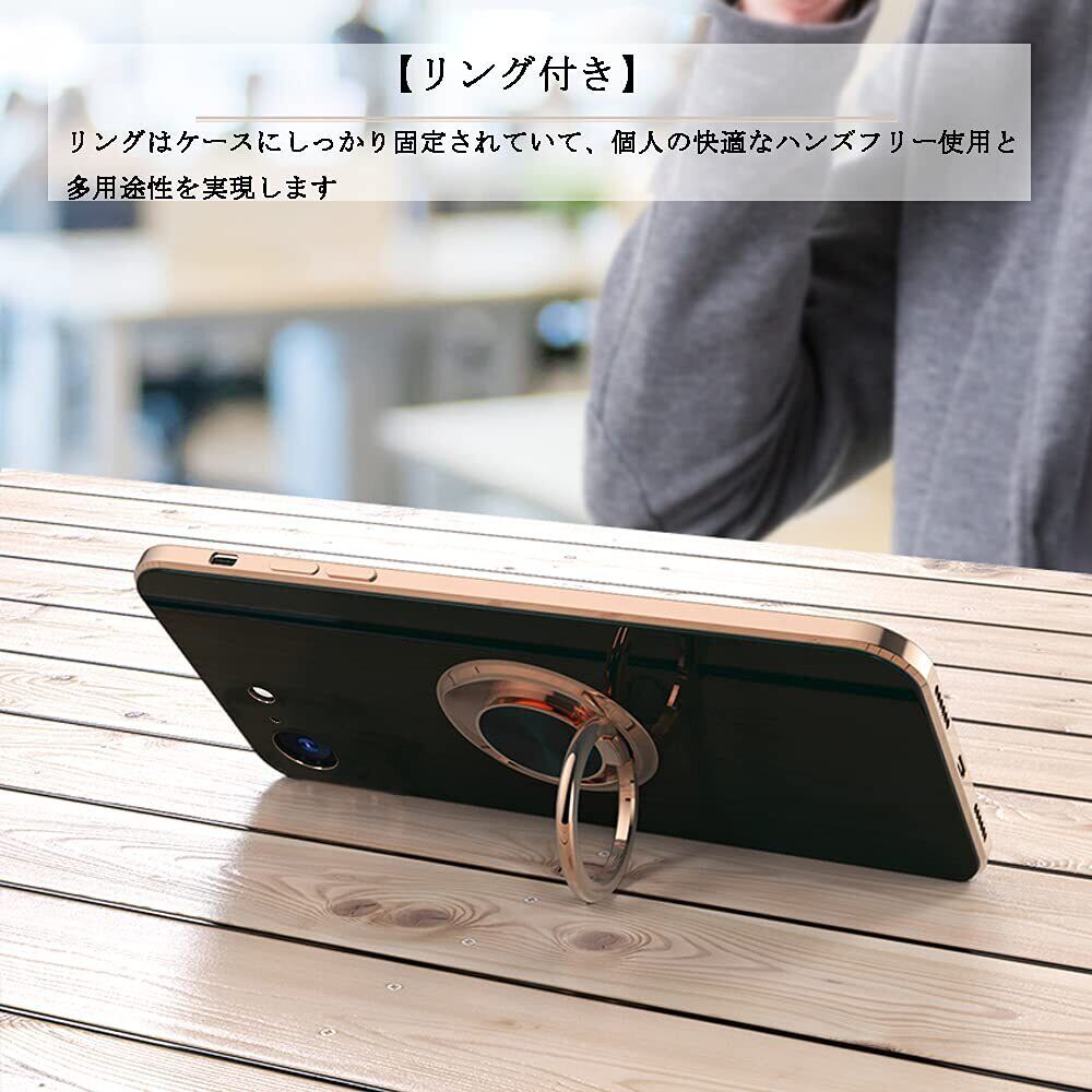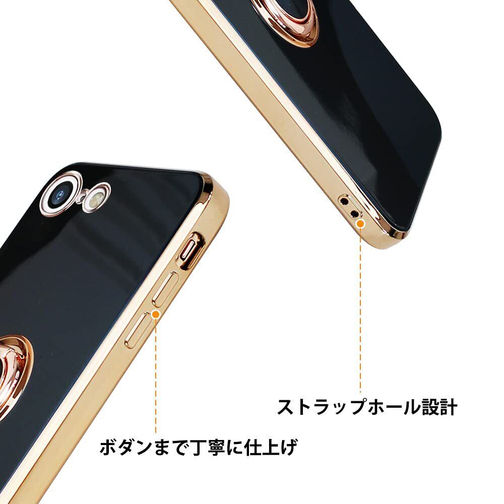 iPhone8 ケース iPhone7ケース iPhoneSE ケース 第2世代 第3世代 リング付き メッキ加工 レンズ保護 tpu ソフト ストラップホール付き 耐衝撃 スリム おしゃれ iPhone 8 アイフォン8 ケース (iPhone SE2/7/8/SE3, ブラック)