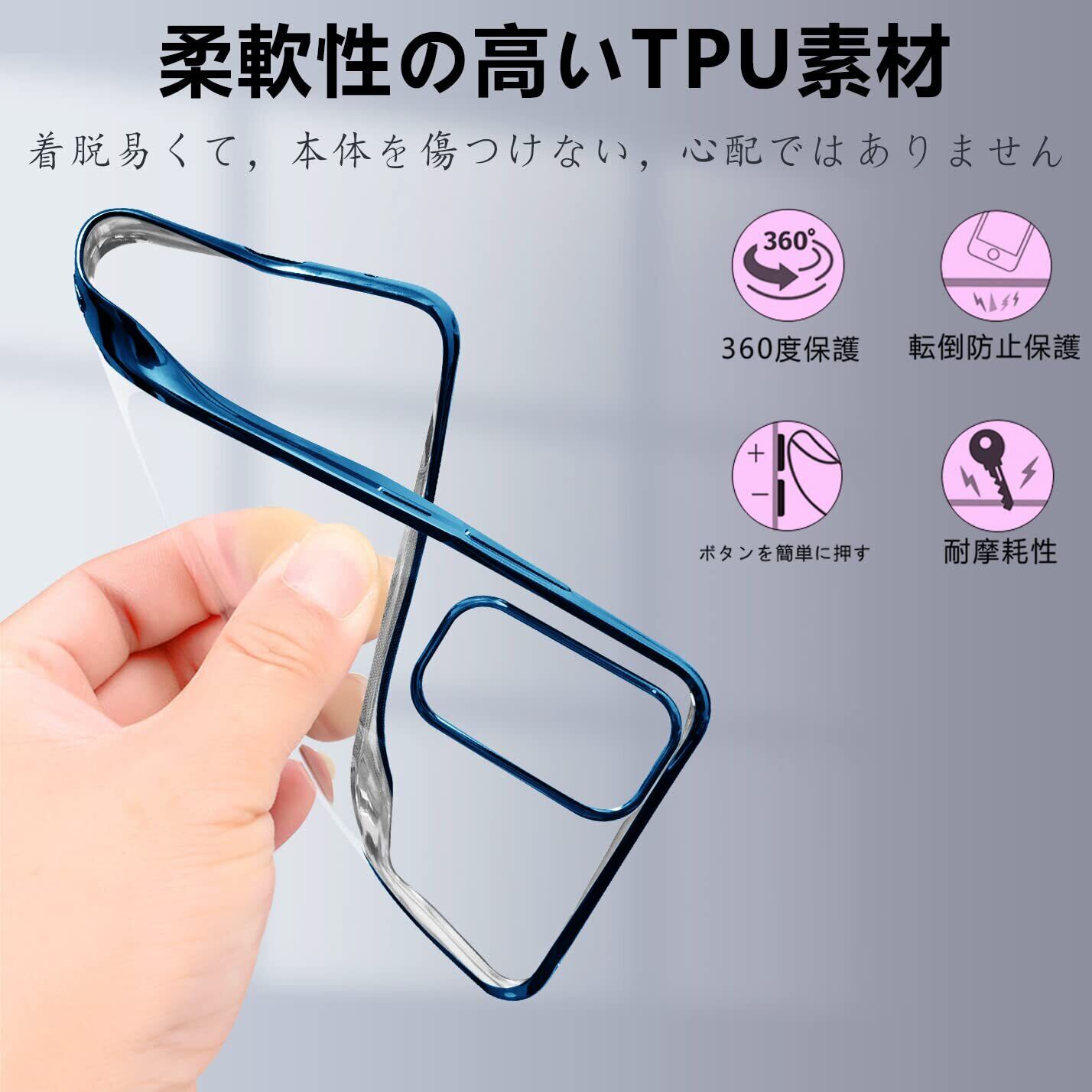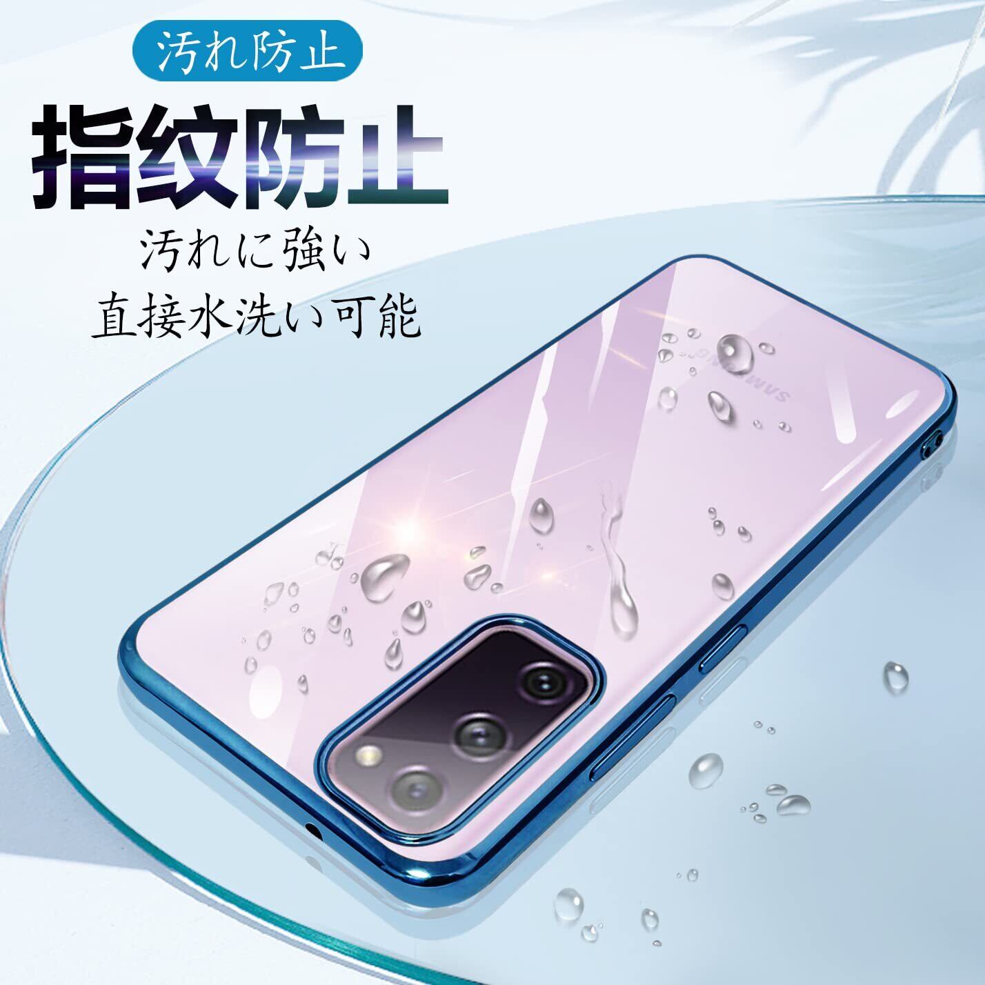 Galaxy S20 ケース クリア ギャラクシーs20 SC-51A/SCG01 カバー 透明 耐衝撃 軽量 薄型 tpu 背面クリア メッキ加工 スマホケース ソフト ストラップホール付き ワイヤレス充電対応(galaxyS20, ネイビーブルー)