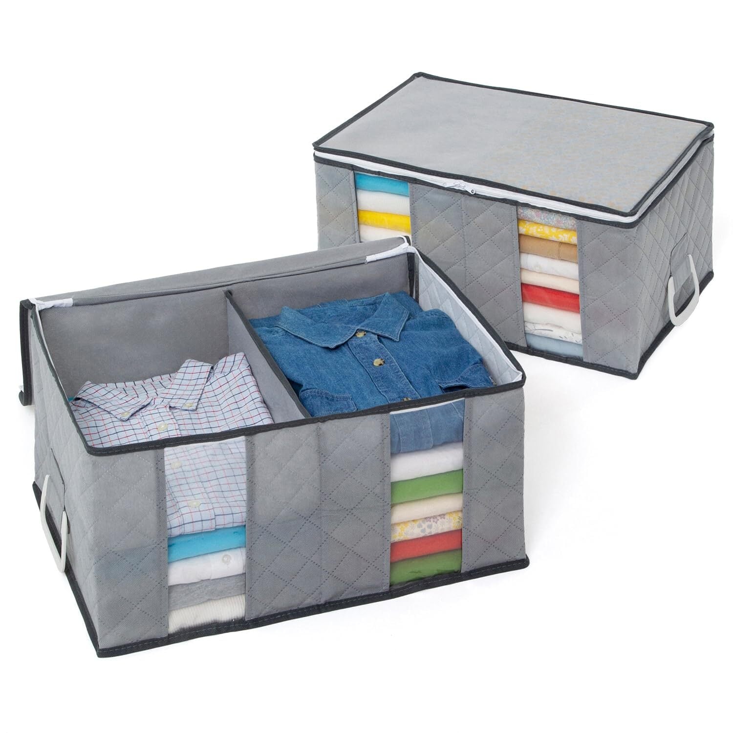 アストロ 収納ケース グレー 2枚組 衣類用 仕切り 持ち手付き 衣類収納袋 通気性の良い不織布がホコリなどの汚れをガード 仕切り付きで衣類が崩れにくい 持ち運びしやすい洋服 収納ボックス 衣装ケース クローゼット 押し入れ収納 179-03 | yankees