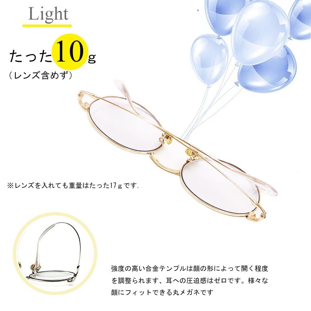 [Granvan] ブルーライトカット メガネ uvカット おしゃれ スマホ用 丸メガネ 超軽量 度なし レディース メンズ ユニセックス ケース付き (02 金色(ゴールド))