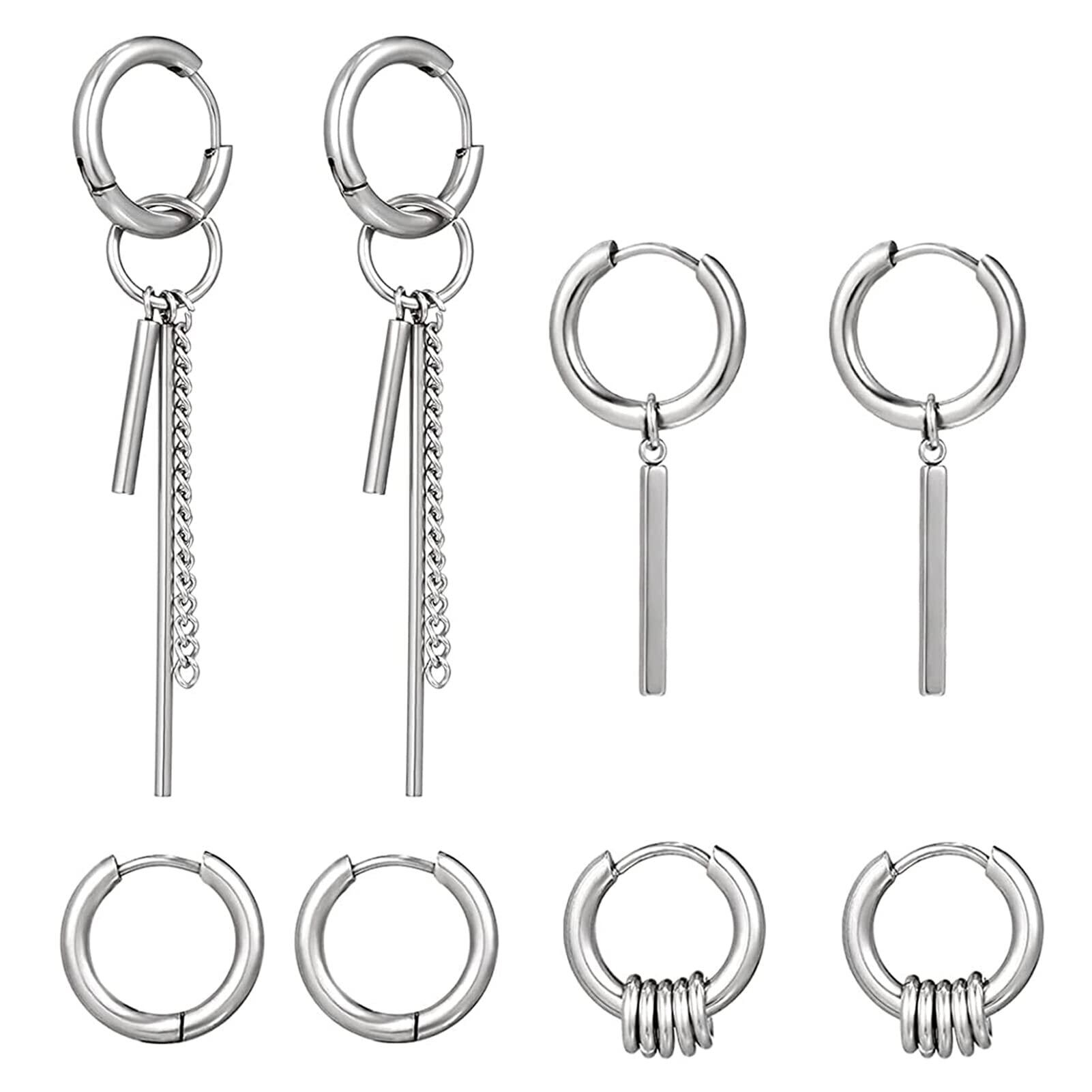 Hitchlike ピアス メンズ レディース 4ペアセット チェーンピアス イヤリング フープ リング フープピアス 両耳用 ボディピアス ステンレス 金属アレルギー対応 人気 シンプル ファッション プレゼント