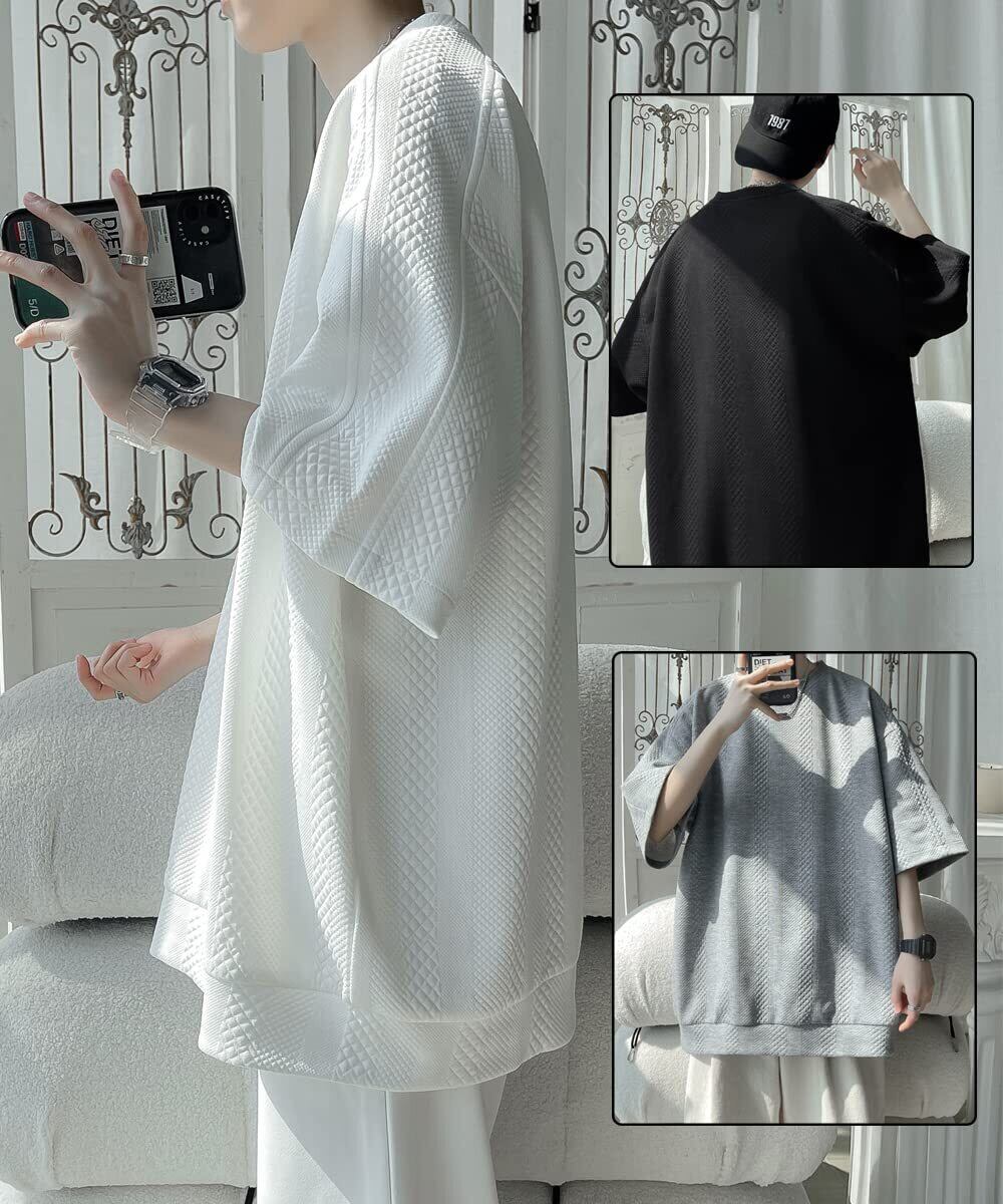 [foxseon] 夏服 メンズ Tシャツ メンズ 半袖 五分袖 無地 人気 カジュアル ファッション 丸襟 柔らかい肌触り ゆったり 大きい サイズ 涼しい 軽い 快適 クルーネック おしゃれ カジュアル トップス なつふく サマー 服